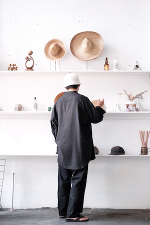 平面的な構造を再解釈し、天然素材が持つ本来の機能性と組み合わせることで、一過性の時代の流れにとらわれることの無い、永く続く服を目指しています。