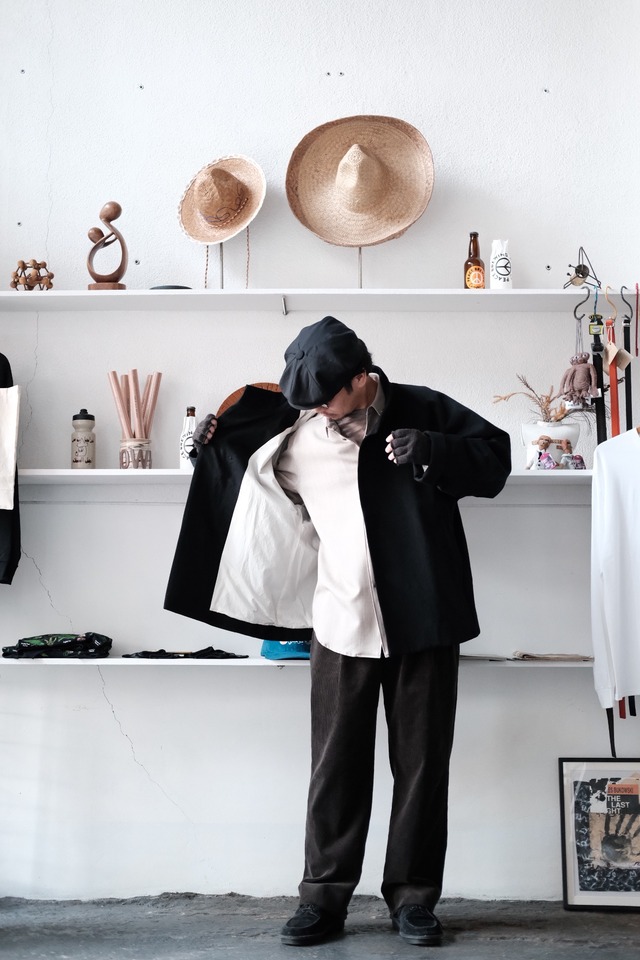 平面的な構造を再解釈し、天然素材が持つ本来の機能性と組み合わせることで、一過性の時代の流れにとらわれることの無い、永く続く服を目指しています。