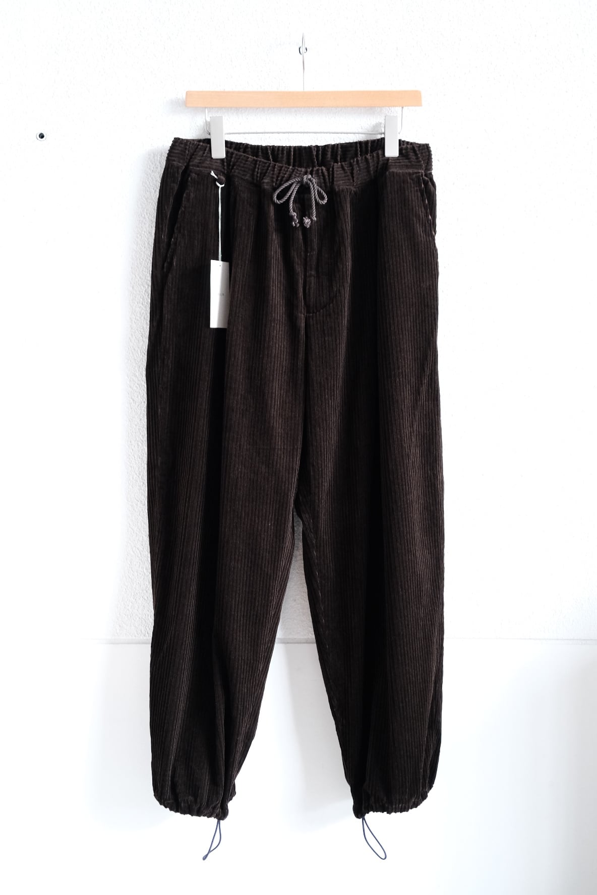 HEALTHで2021年から定番化しているEasy pants #7のサイドのポケットなしタイプ。USの古いスポーツウェアより着想。裾には現代的なアジャストシステム完備。イージーパンツとして最低限のステッチだけを残し工場の負担を軽減し、恒常的に高いクオリティを保つデザインとなっています。