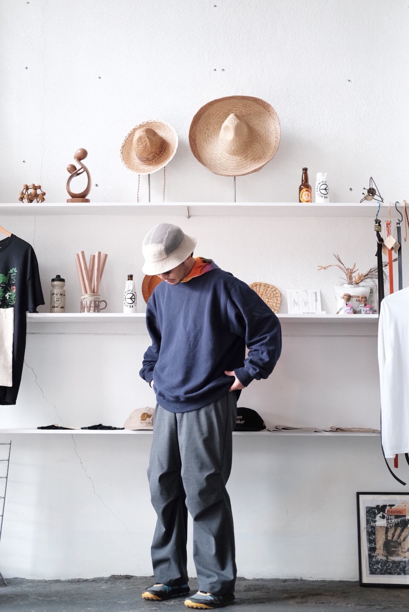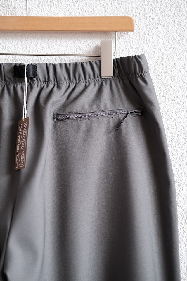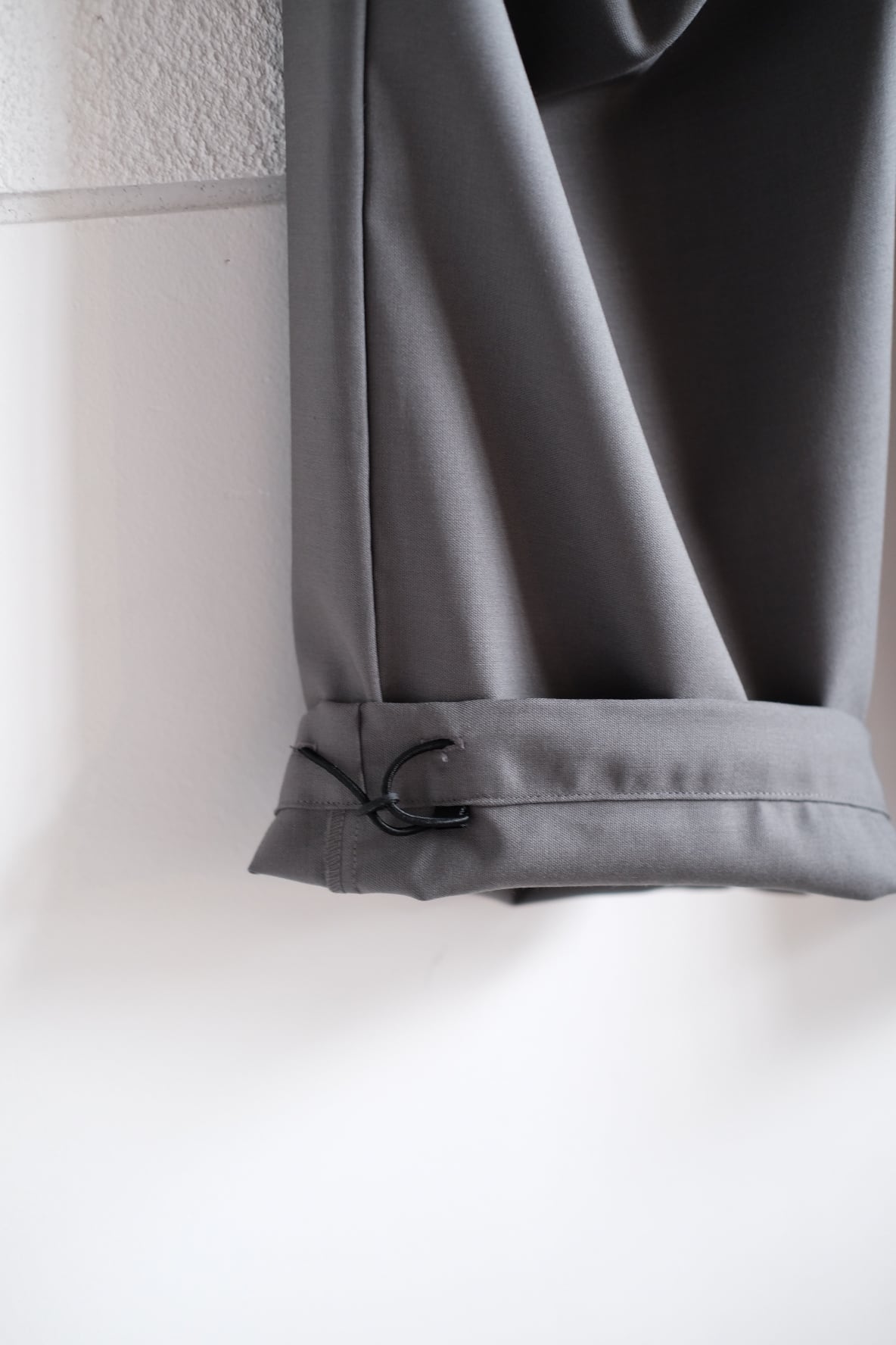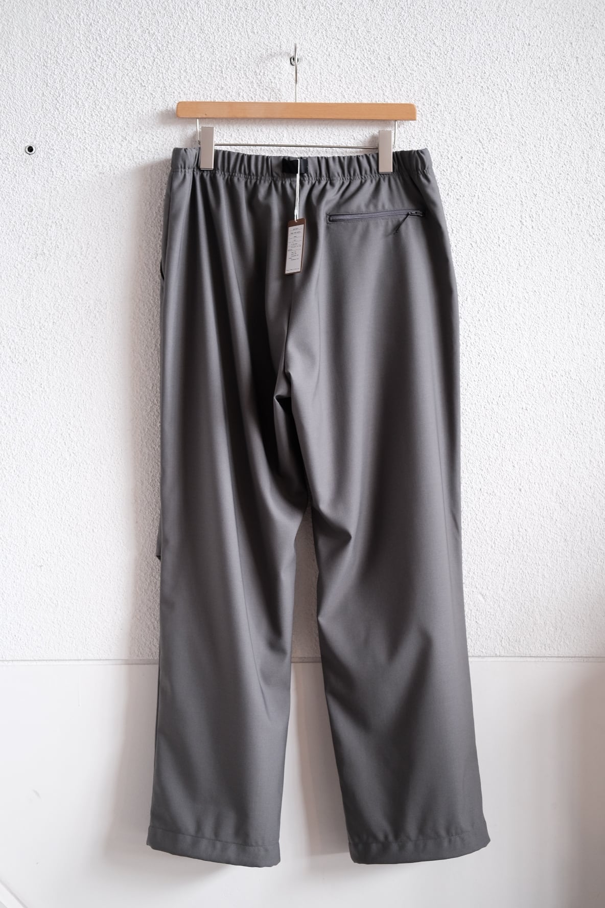 "CORDURA COMBAT WOOL"を採用した" Knee tuck pants"。ミリタリーパンツをベースにしたタップリとしたワイドシルエット。深めにとった股上に、ゴムとアジャスターベルトつけたウエスト、快適な履き心地です。裾を絞って着用できるよう、ゴムスピンドルを内蔵しています。