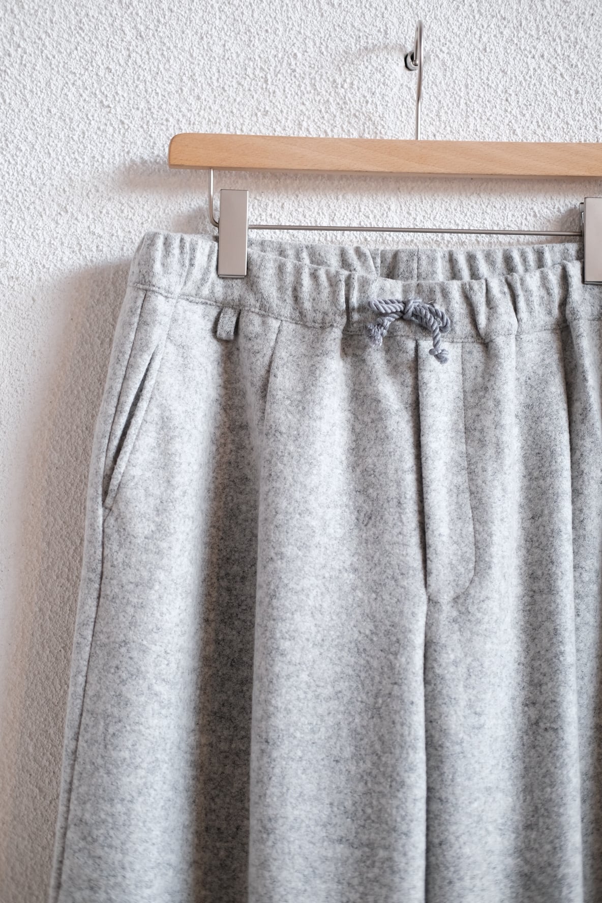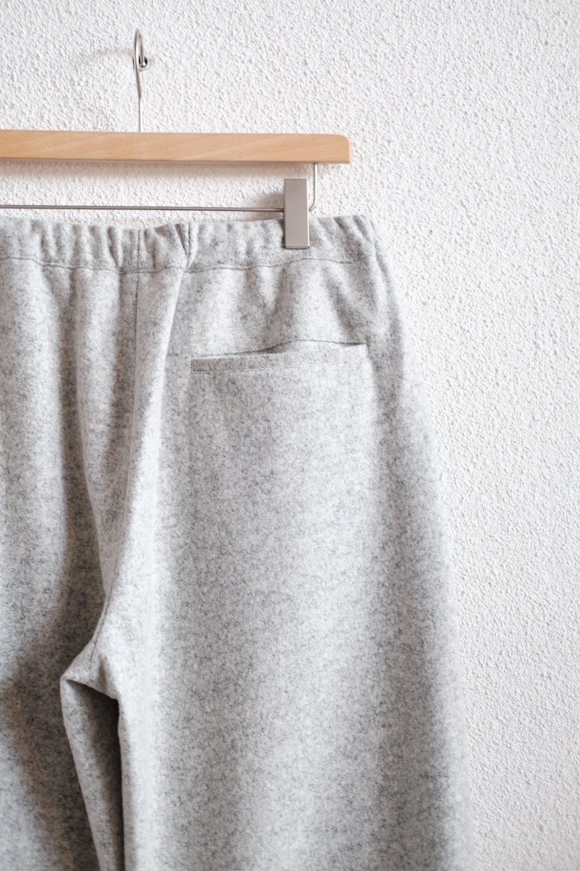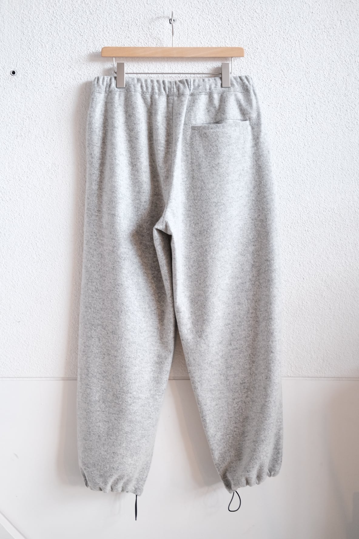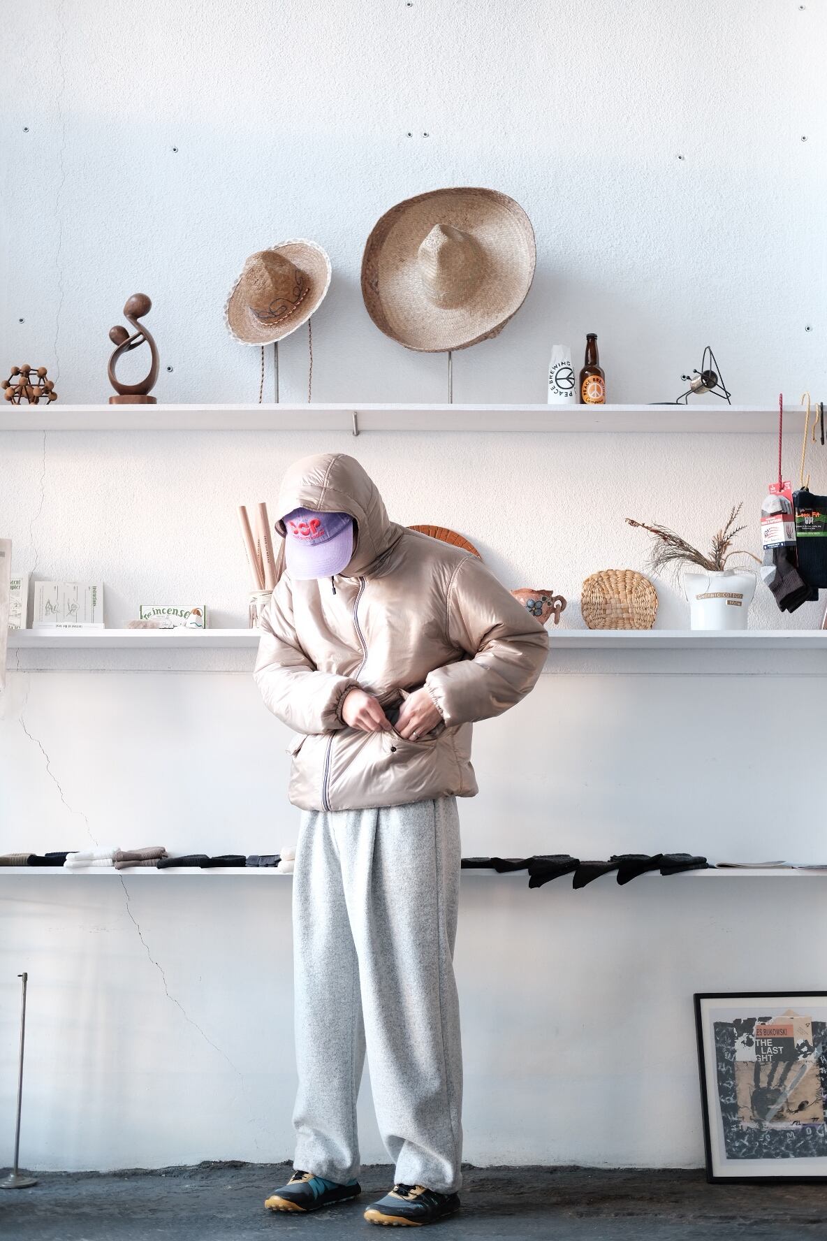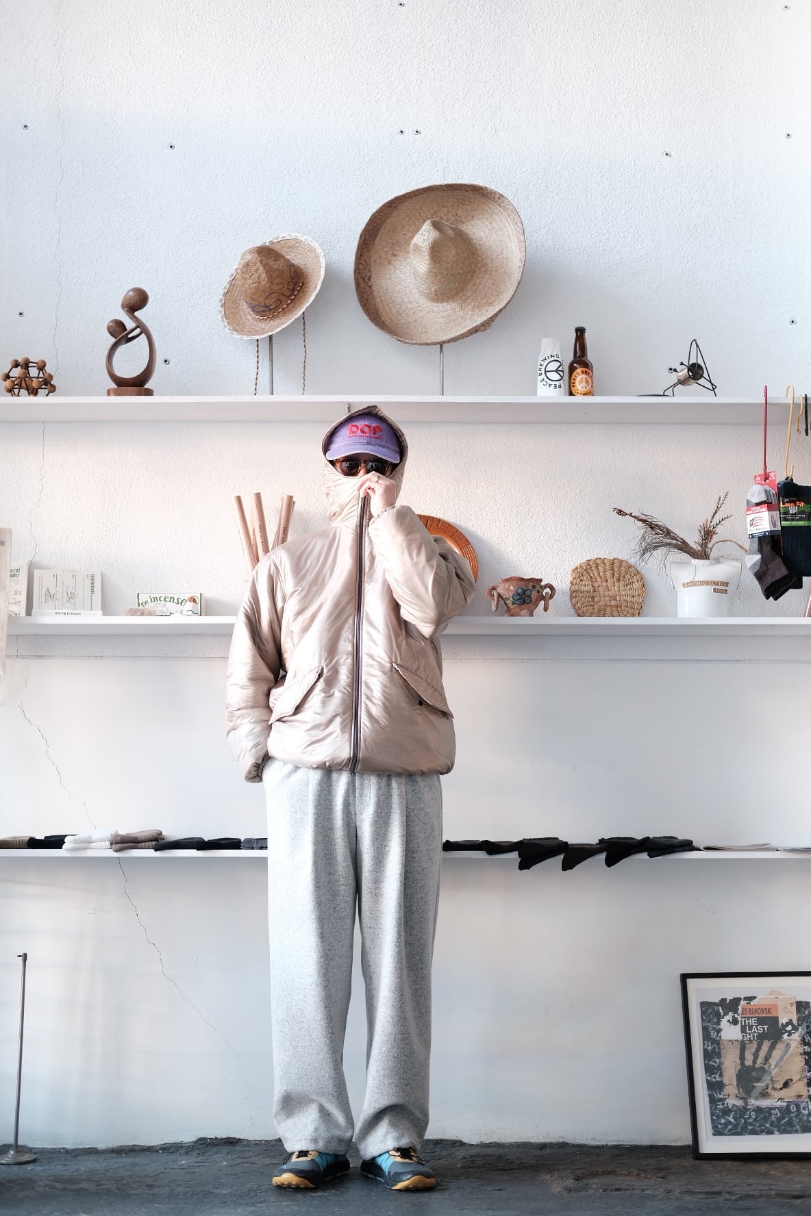HEALTHで2021年から定番化しているEasy pants #7のサイドのポケットなしタイプ。USの古いスポーツウェアより着想。裾には現代的なアジャストシステム完備。イージーパンツとして最低限のステッチだけを残し工場の負担を軽減し、恒常的に高いクオリティを保つデザインとなっています。