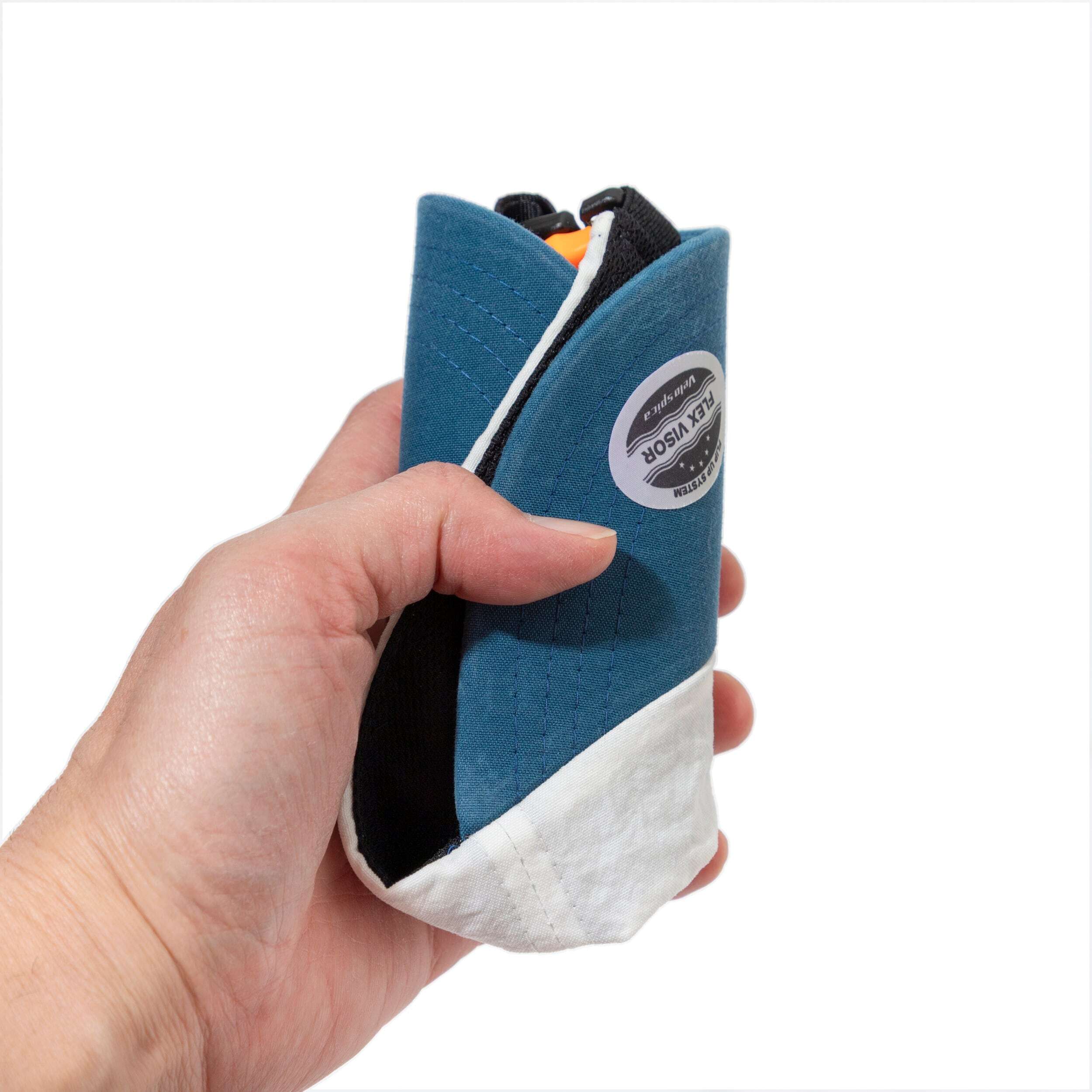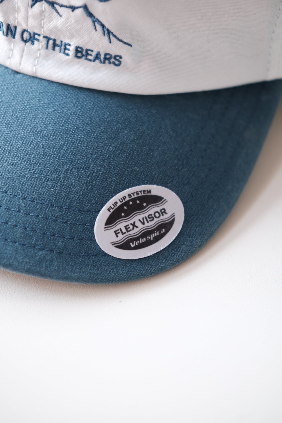 ボディはコットンライクな風合いが特徴のタスランナイロンを使用しています。軽量で耐久性に優れ、撥水性も備えた生地です。ツバにはナイロン生地用に特別に開発したウォッシュ加工が施されており、自然なヴィンテージ感が魅力です。ツバは定番の、柔らかく折りたたむ事も出来、かつ形をキープさせやすい特殊な加工が施されたフレックス・バイザーを採用しています。今回はカーブした型を最初からつけてあります。柔軟性のあるツバとナイロン生地のウォッシュ加工の組み合わせは、まだどこのブランドもやっていない初の試みだと思います。またvelo spica のツバの特徴でもあるフリップ・アップ(視界を広げたい時にはツバを上に跳ね上げる)して被ることも可能です。背面にはテープのバタつきや、抜け出て来るのをおさえるホイッスル付きストラップキーぱが付属しています。山で熊の痕跡を見つけた時は、角笛を吹く牛飼いの様に、このエマージェンシーホイッスルを吹いて警戒にあたるのも良いかも知れません。そして今回から背面のアジャやスターが簡単に取り外せるフック型を採用しています。バックパックのコードなどに気軽にひっかける事が可能になりました。