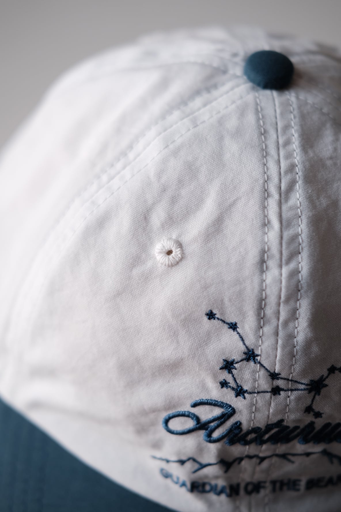 フロントの刺繍デザインは、うしかい座の一等星『Arcturus』(アルクトゥールス)をモチーフにしました。アルクトゥールスは春の夜空に一際明るく輝くオレンジ色の星で、スピカ、デネボラ、と合わせて春の大三角形の一角を成す星です。またこの星はギリシア語で“熊の番人”という意味を持ちます。山や渓流に行く際の“お守り”になれば、という想いを込めて作りました。ここで言う“お守り”とは、それ自体が身を守ってくれる魔法のアイテムではなく、注意喚起を促すものだと考えます。動物たちの領域に、あくまでも、私たちがお邪魔するのだと言う自覚を忘れずにいたいものです。GUARDIAN OF THE BEARS の刺繍文字の上の山の輪郭線は、地元東京の西の果て、高尾山から陣馬山縦走路の標高を元に図案化しました。2026のコレクションテーマとなる、『L.Y.L.N : Love Your Local Nature』から着想を得てデザインされています。