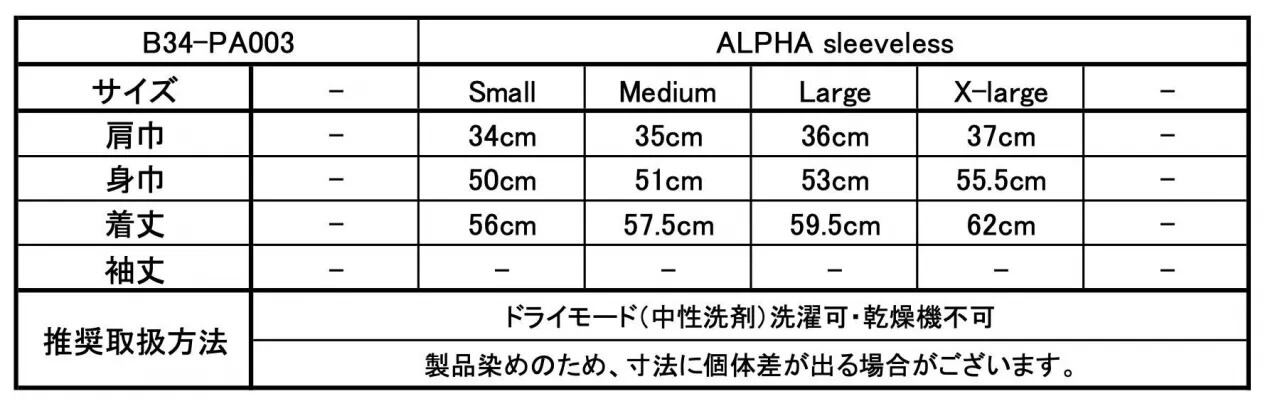 No : B34-PA003 "ALPHA sleeveless"