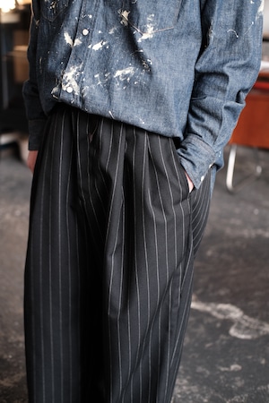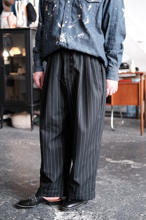 江戸時代から織物の中心地として栄えた尾州(一宮)。近代に入り、産業化と技術の進歩により洗練が進み世界的な評価を受けることとなりました。当時使用されていた織機を使い、最も輝いていた1980~2000年頃のDEAD STOCKを元機屋の倉庫より発掘しました。尾州にしては珍しいT/R素材。耐久性がありシワになりにくいのが特徴です。