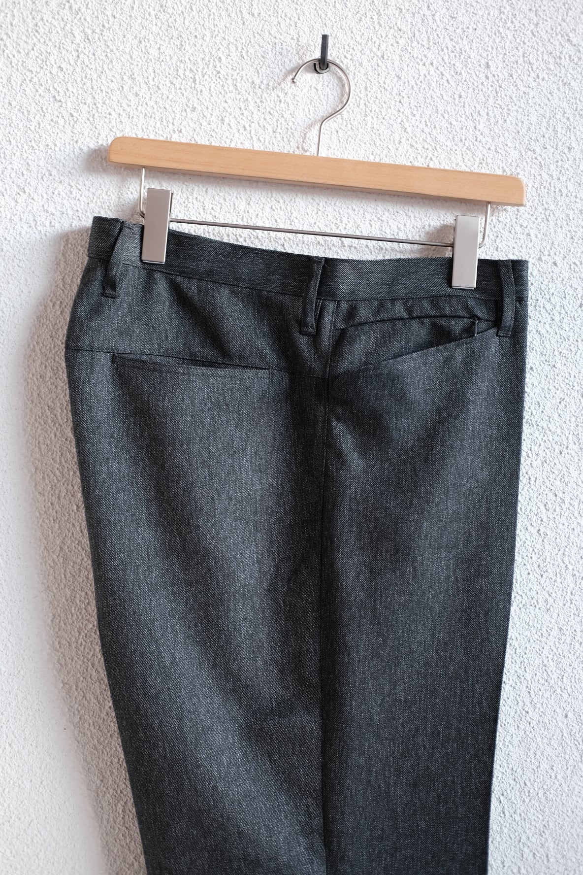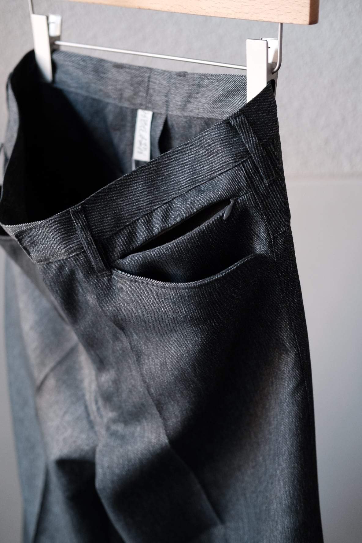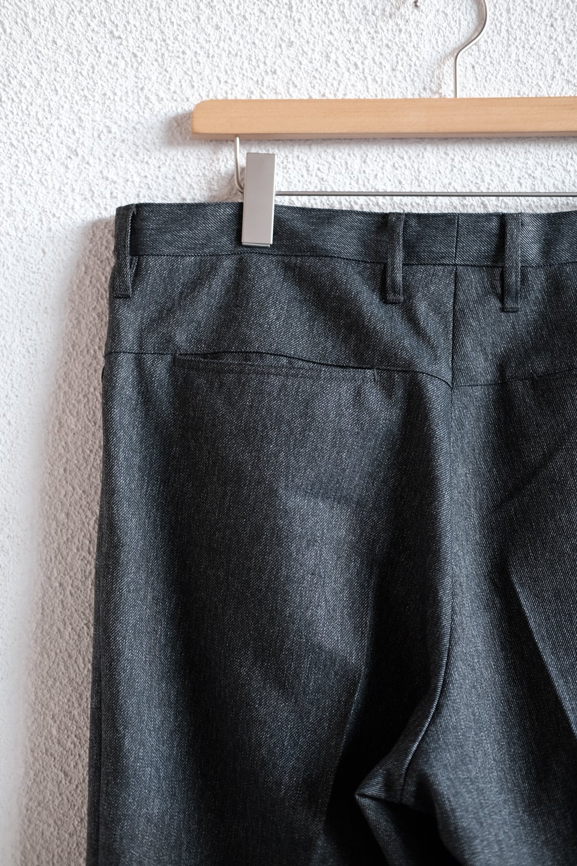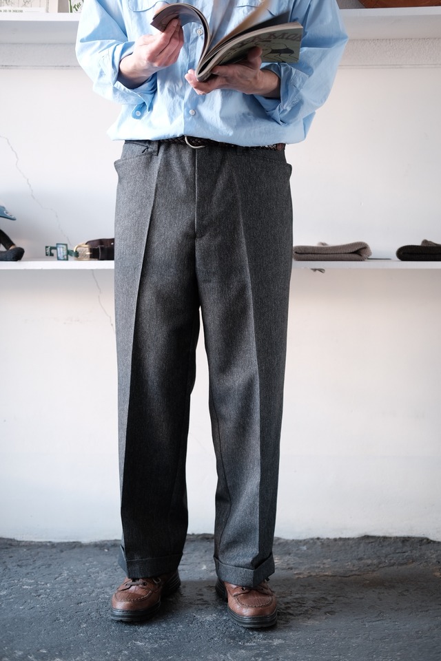 シルエットの良さを残しつつ、ゆったりとした履きやすいトラウザーズに。見た目の重厚さとは反して軽い履き心地です。
