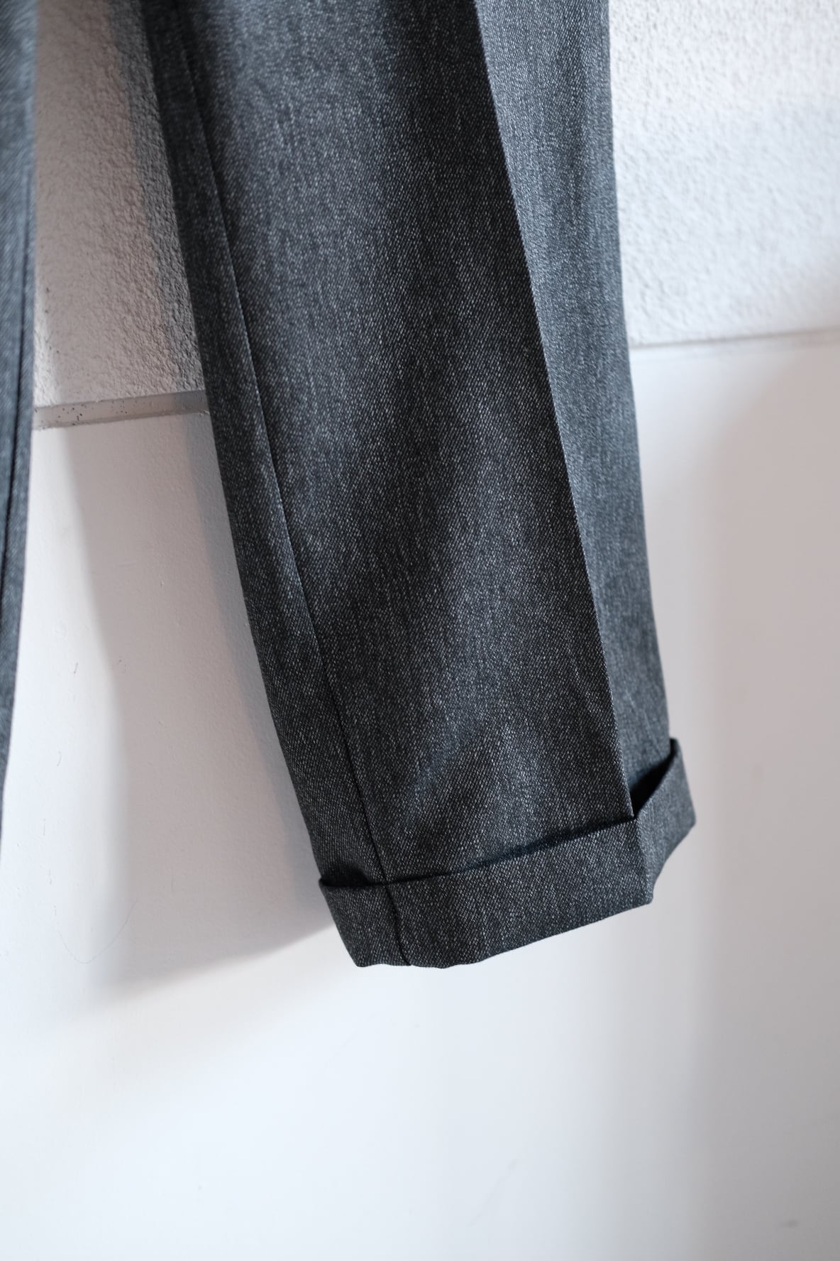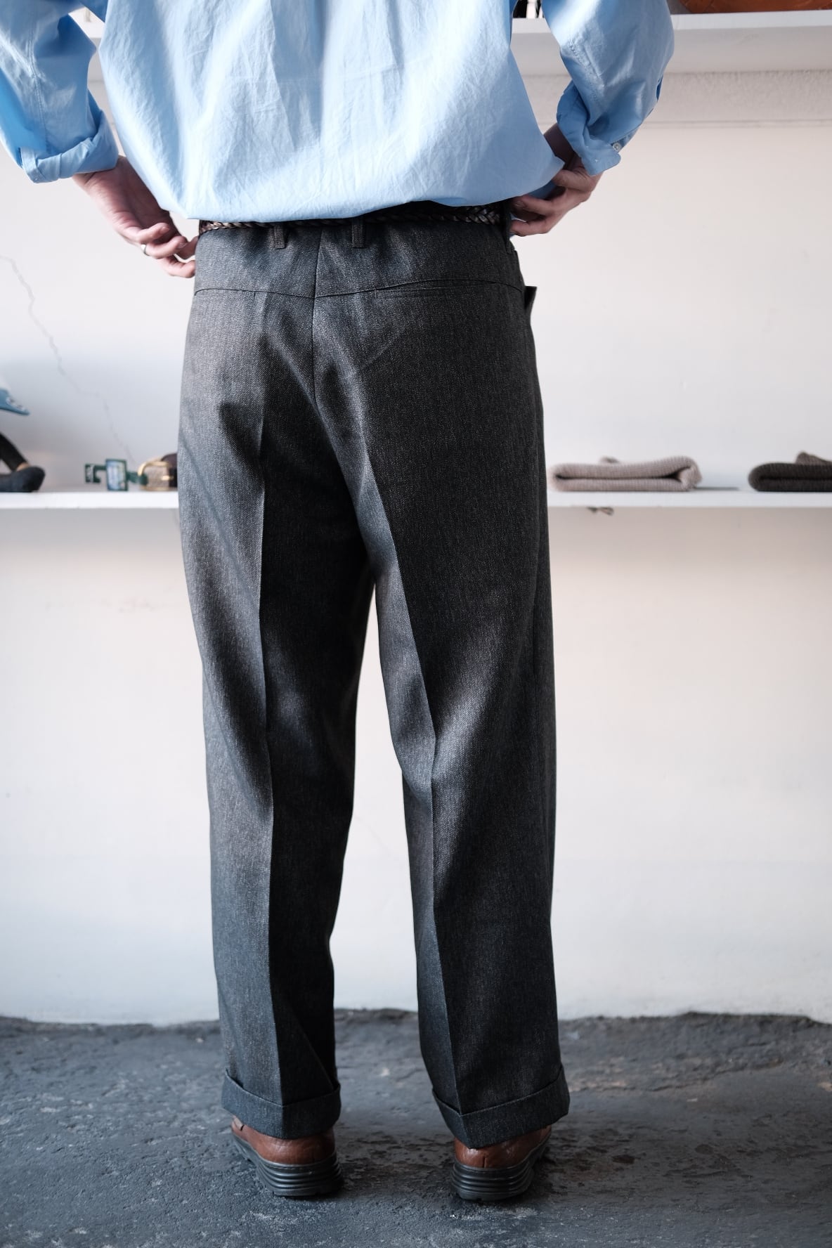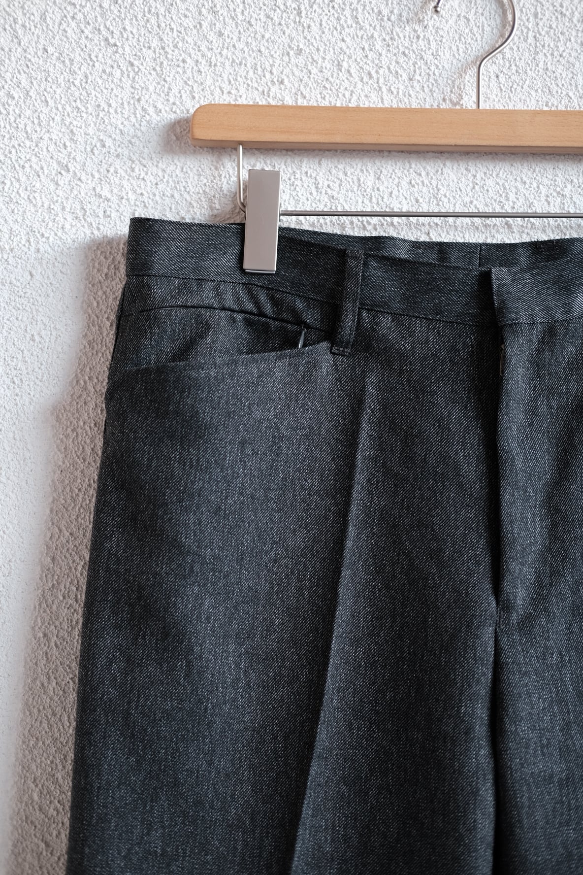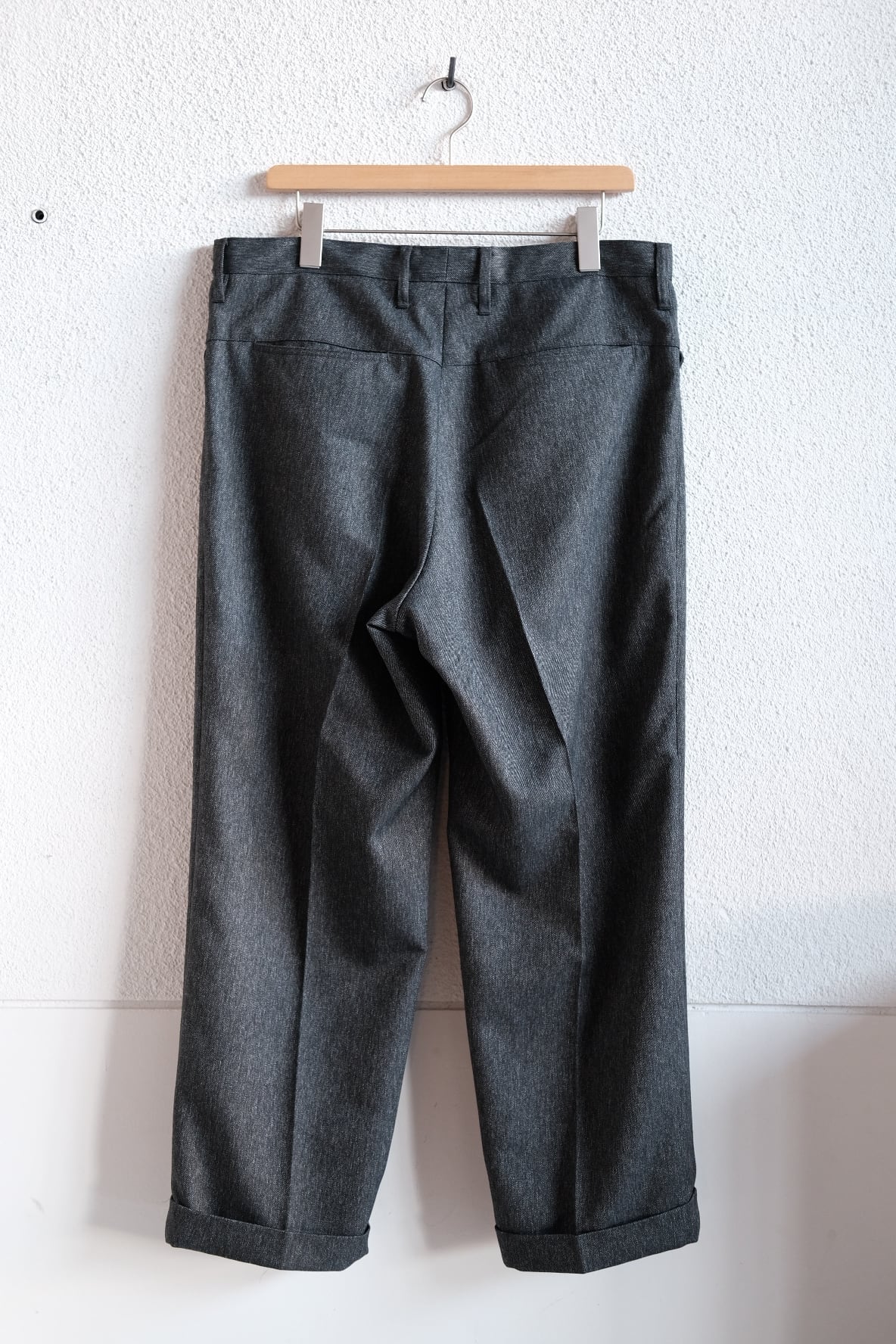シルエットの良さを残しつつ、ゆったりとした履きやすいトラウザーズに。見た目の重厚さとは反して軽い履き心地です。