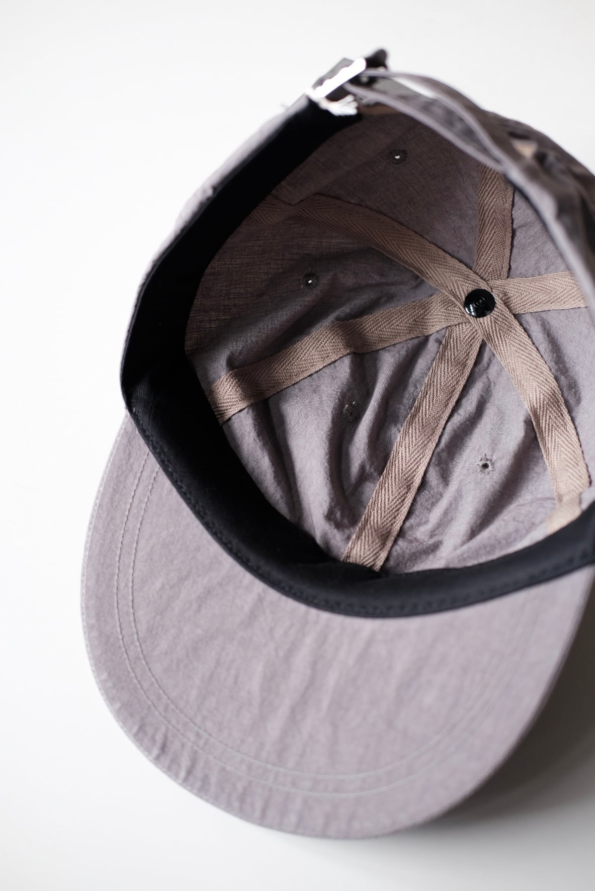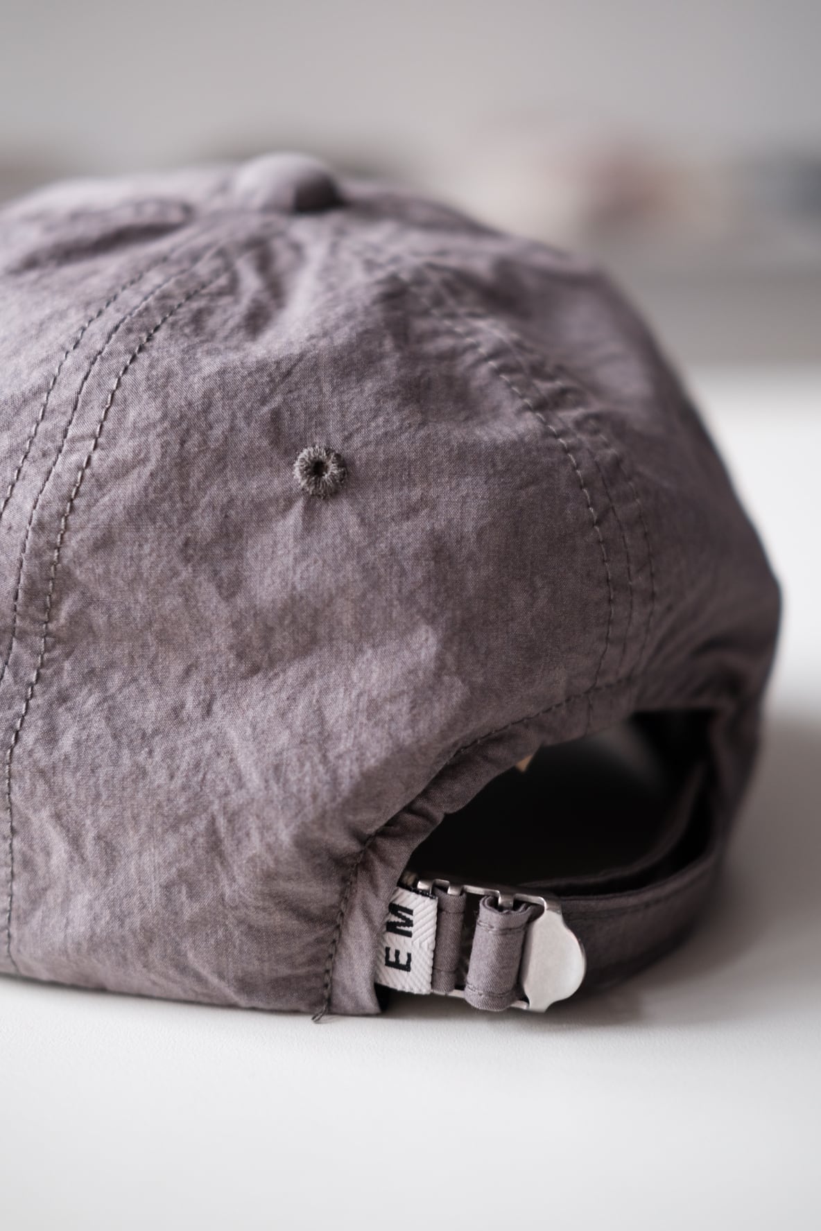 定番の6パネルキャップ。50/50の軽いコットンナイロンを使用。少し下向きになったツバが被った時に落ち着いた雰囲気を醸し出す、若干クセがあるものの、ありそうでどこにも無いキャップ。春らしい色味の三色展開。