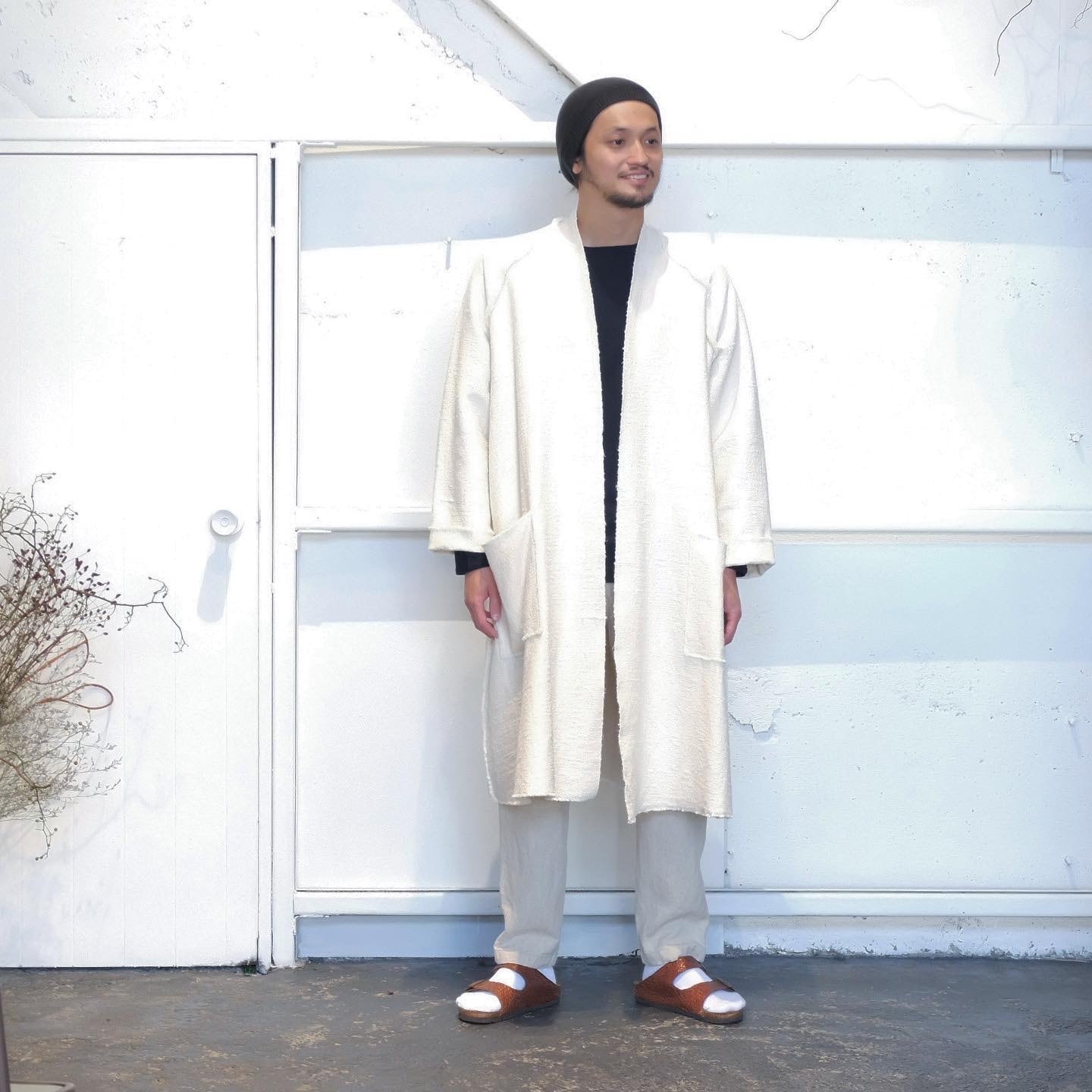 平面的な構造を再解釈し、天然素材が持つ本来の機能性と組み合わせることで、一過性の時代の流れにとらわれることの無い、永く続く服を目指しています。