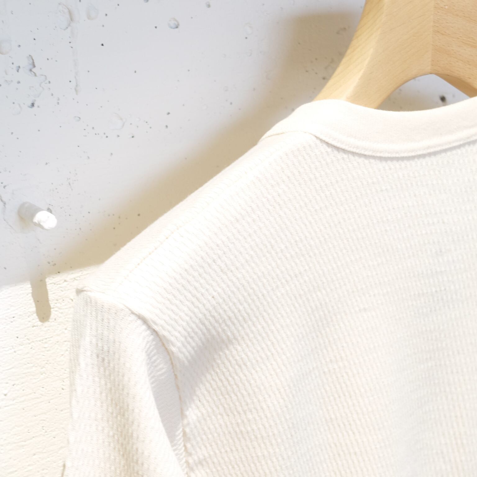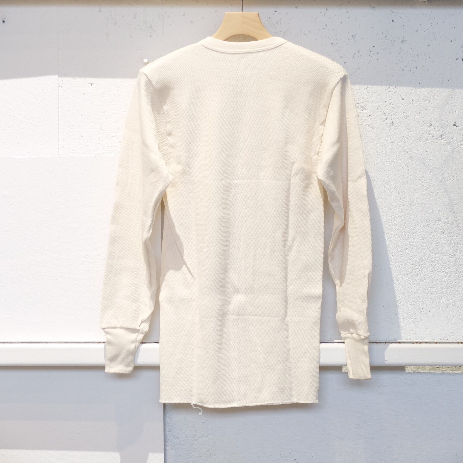 冬の必需品ですね。保温性バッチリなサーマルです。こちらはラッセル編みなのでワッフル編みと比べると保温性が高くなります。拘り派の方は、ぜひ綿100%のインナーで冬を越してください。首元や袖口からチラッと見えた時、化学繊維のインナーとは雰囲気が全く違いますんで。