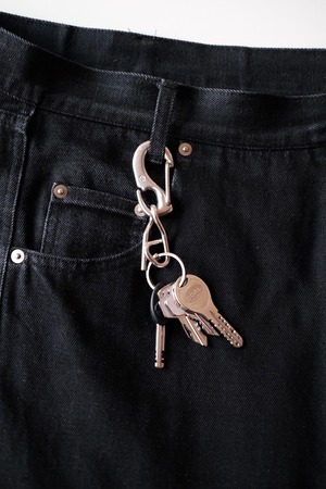 フランスのマリンメーカー<ウィチャード社>が作るフックを使用したキーホルダー。真鍮にシルバーコーティングを施しています。中間の金具はニールのオリジナル。知恵の輪のような不思議なデザインです。ややマットな色合いも良い感じです。