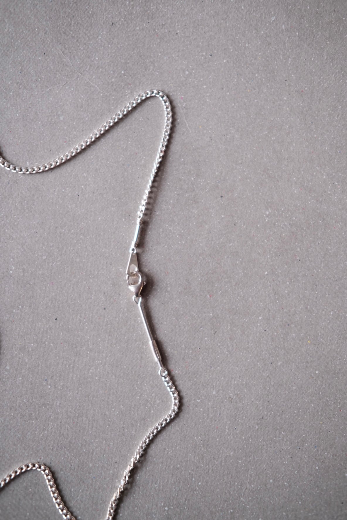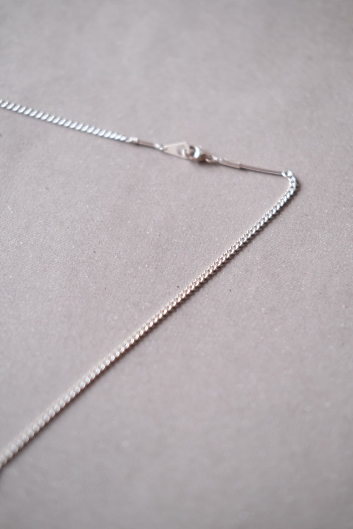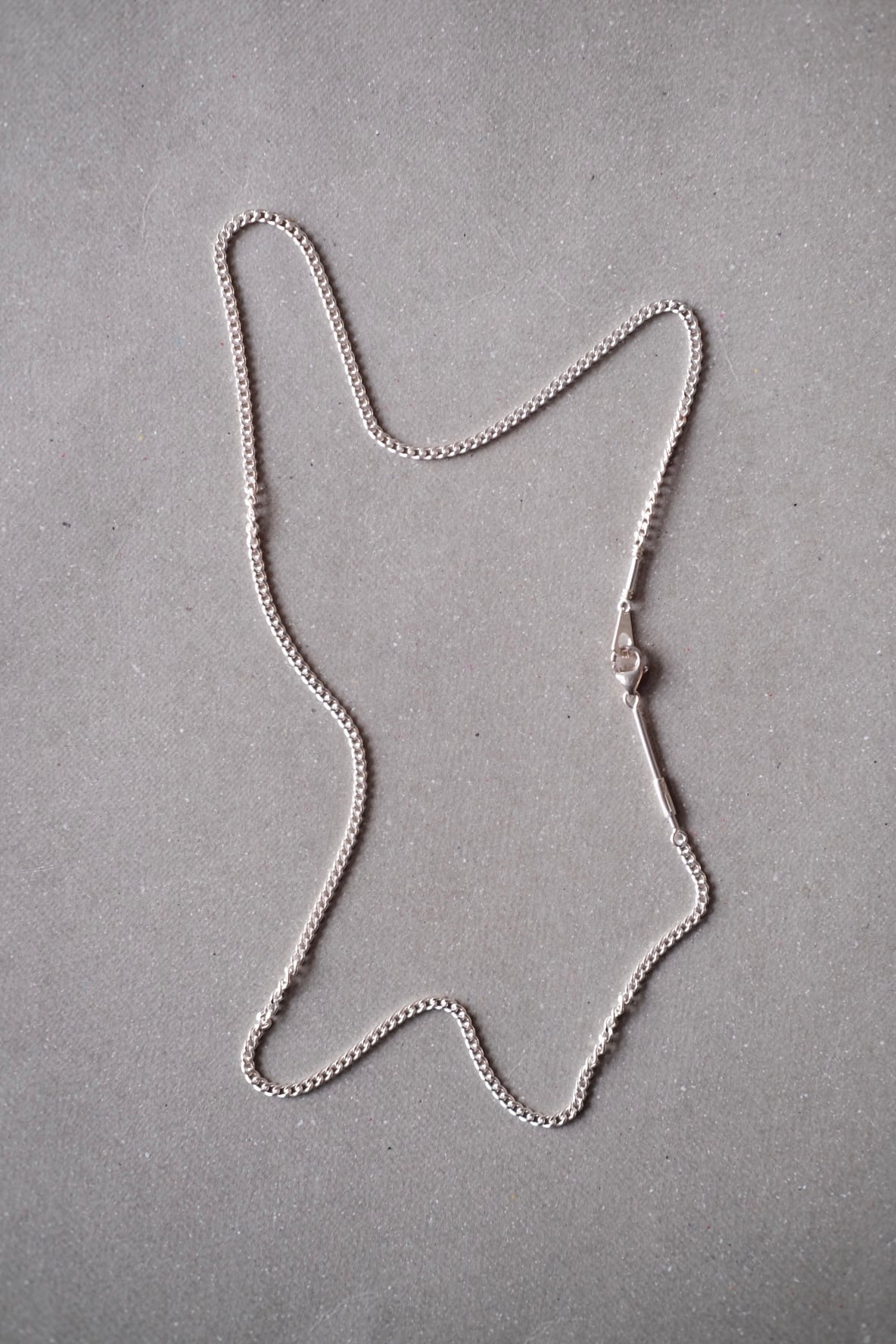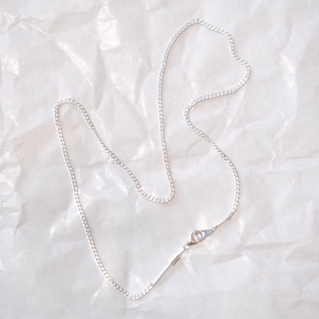 小さく細かい喜平のチェーンで、長さは45cmとやや短めです。素材はシルバー925、程よく高級感があり、いやらしさもなく何にでも合わせやすいと思います。