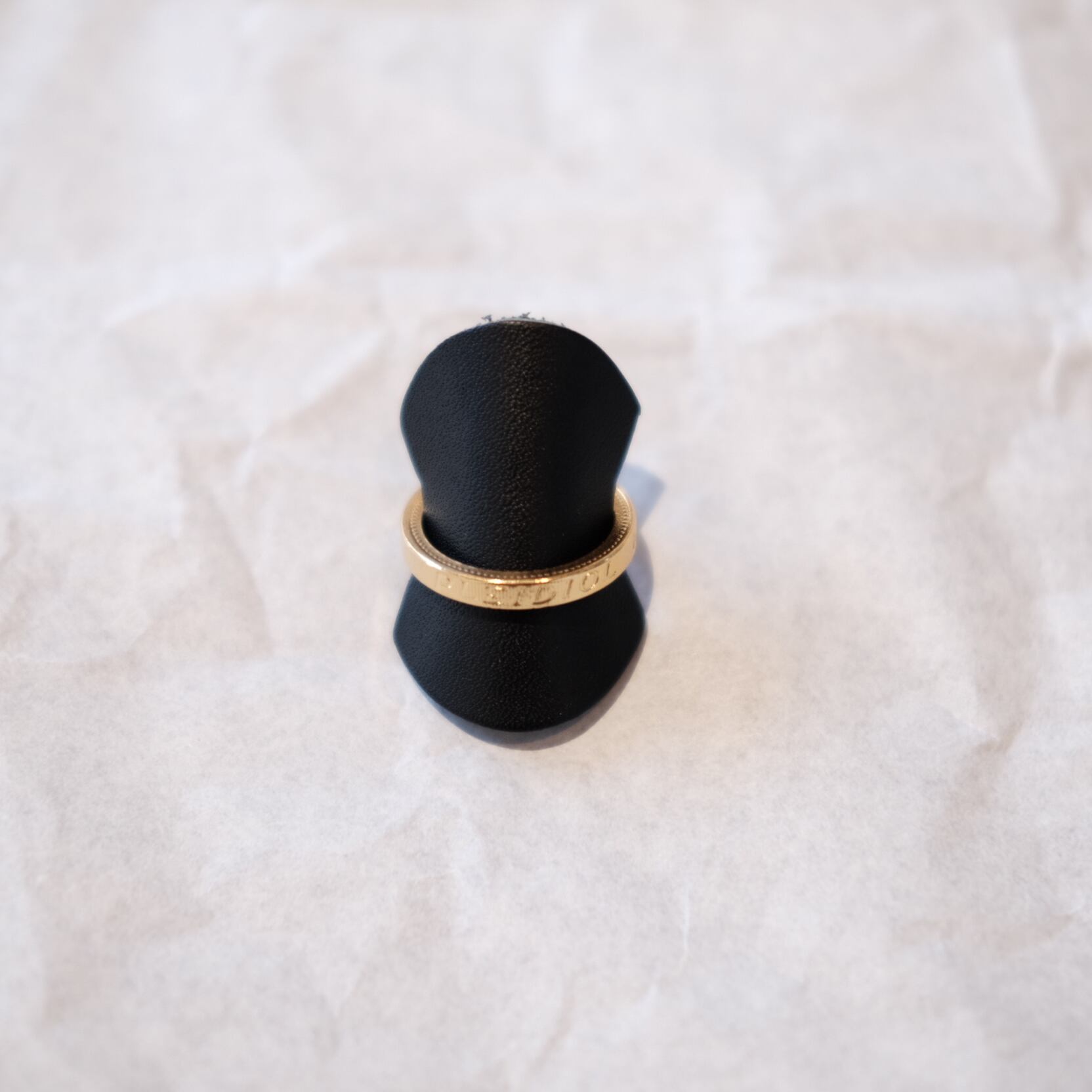旧イギリス硬貨1ポンドを使用したリングです。サイズはワンサイズのみの展開になります。アメリカのモーガンリングはよく聞きますけどポンドリングは珍しいですね。シンプルですが存在感のあるリングに仕上がっております。