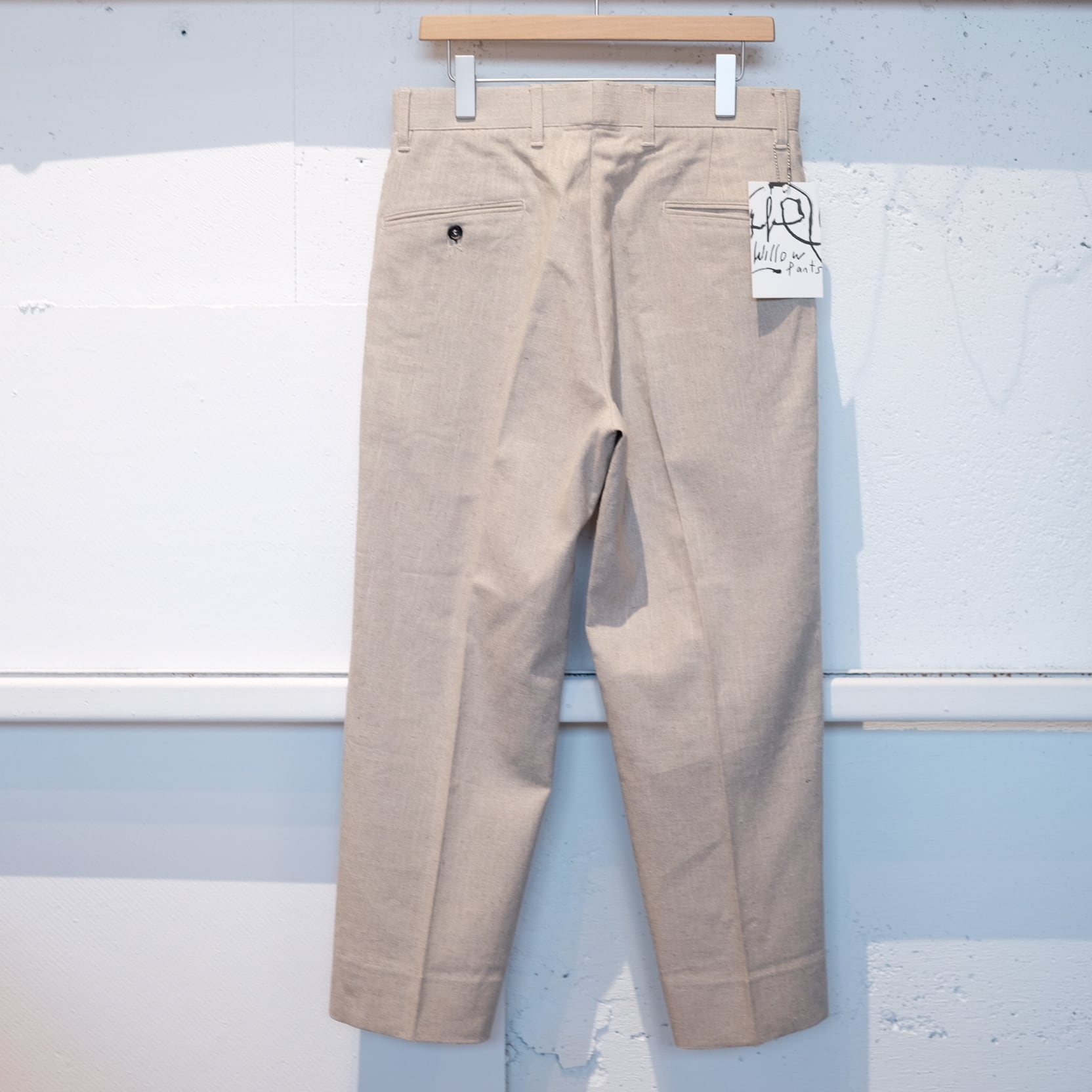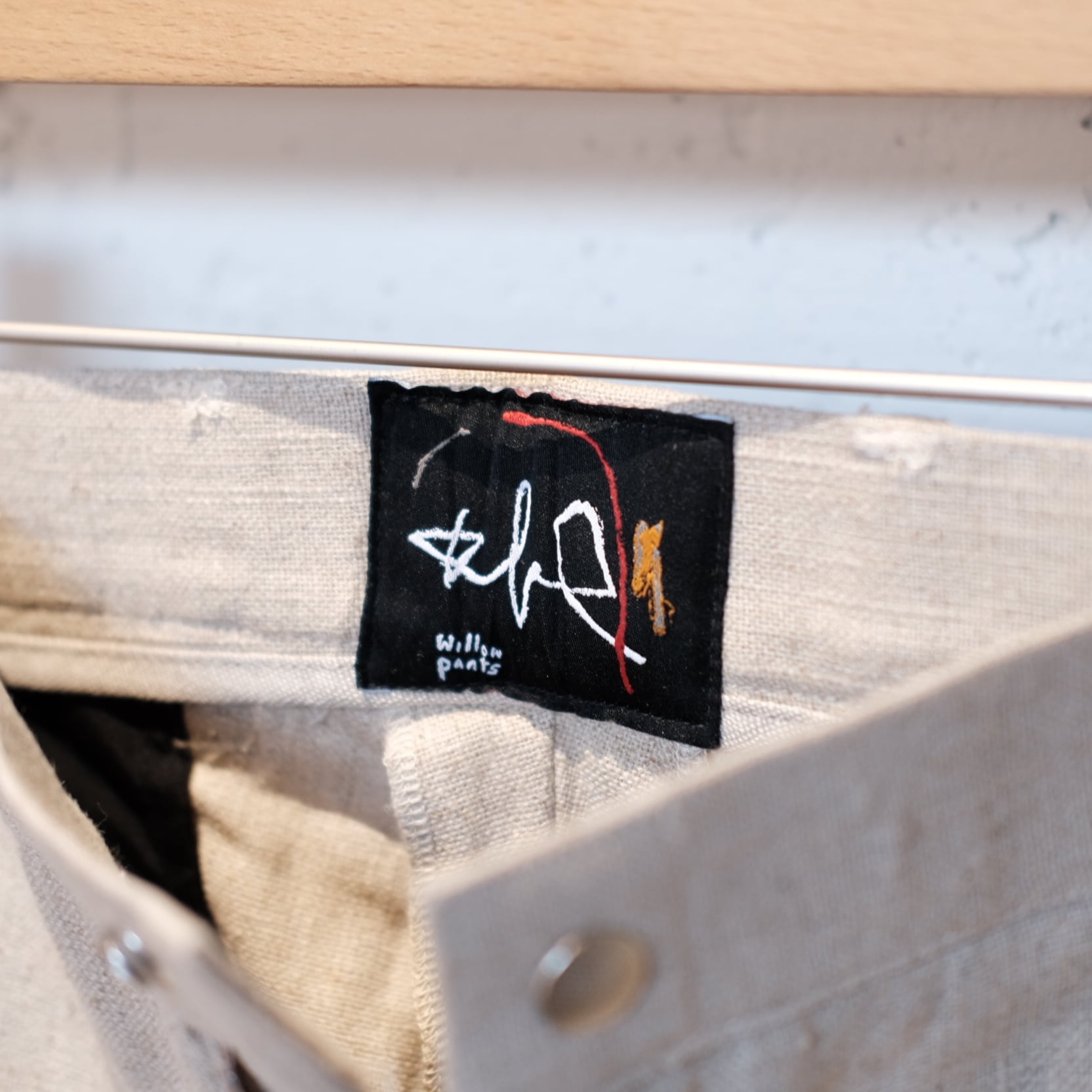 独立して新たに沢山の景色や仲間に出会う事が出来ました。僕は学校でいう休み時間が大好きです。人が好きです。改めてそんな事を想いながら本日Willow Pants というパンツに特化したレーベルを立ち上げました。僕が大好きなSANFRANCISCOの街並みには、Willow(柳の木)が点在しています。後に思った事ですが、そんなWillowを眺めながら仲間と麦酒片手に微笑みあった事は良い思い出です。そんな想いを込めてWillow Pantsと名付けました。何せアナログな人間です。今の世の中について行く事が下手くそですが、自分が想う今を表現できればと想っています。未来を生きるに人には過去があり、過去の教訓を生かす。