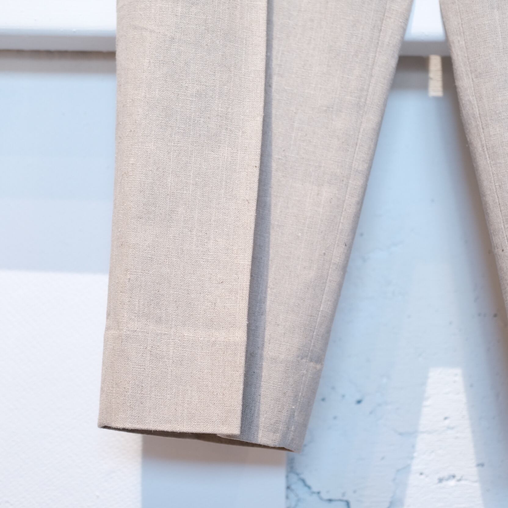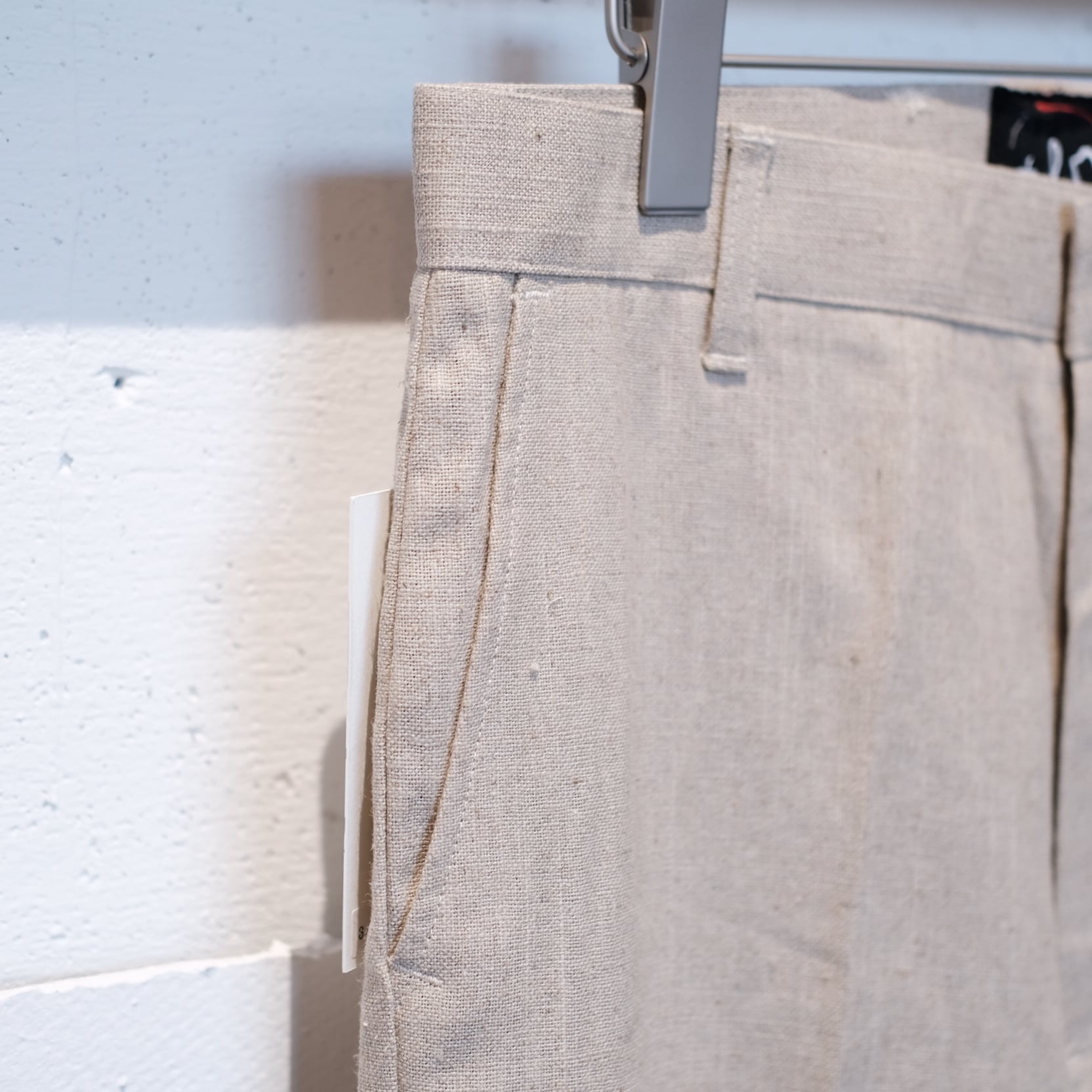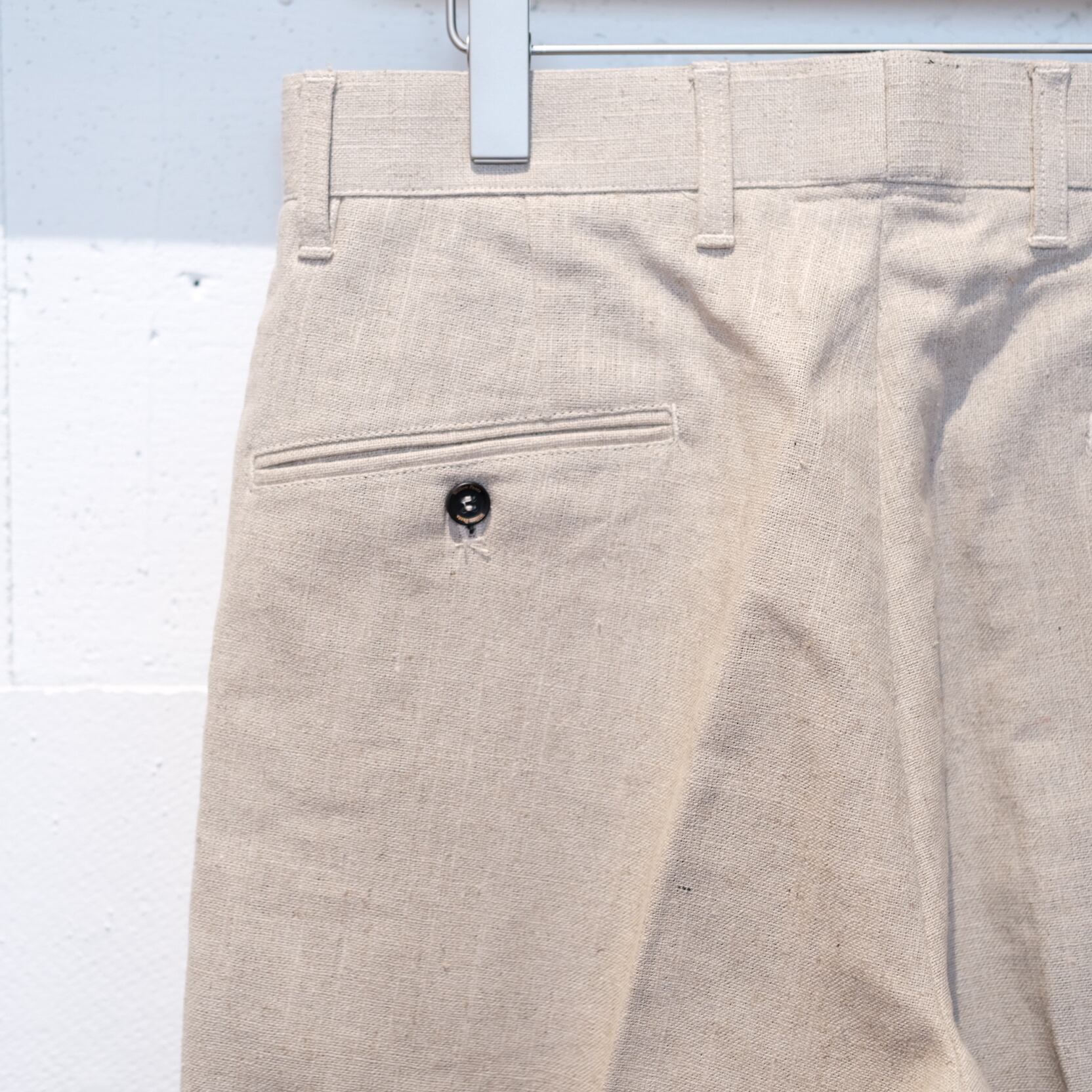 楽しみにしていた1本が届きました。春夏にぴったりなどこかリゾート感の漂うナイスファブリックを使用したスラックスです。オープンカラーのシャツやリネンシャツなど涼しげなアイテムに合わせていただきたいですね。サンダルにもバッチリです。