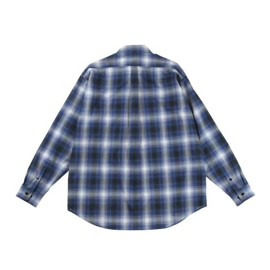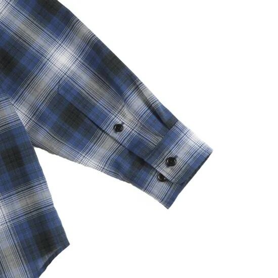 オリジナルファブリックである"Wool nylon dry check"を採用した"Regular collar"。たっぷりとしたシルエットとゆとりのあるアームホールが特徴の定番品番。両胸にはフラップ付きのパッチポケット、袖カフスには調整可能な2つのボタンを配しています。接着芯も極力使わずに仕立てているため、ふんわりとした仕上がり。ドレスシャツの職人による丁寧な柄合わせも見所の一つ。"Blue stripe"には高瀬貝、"Blue check"にはナット製のボタンをそれぞれ採用しています。