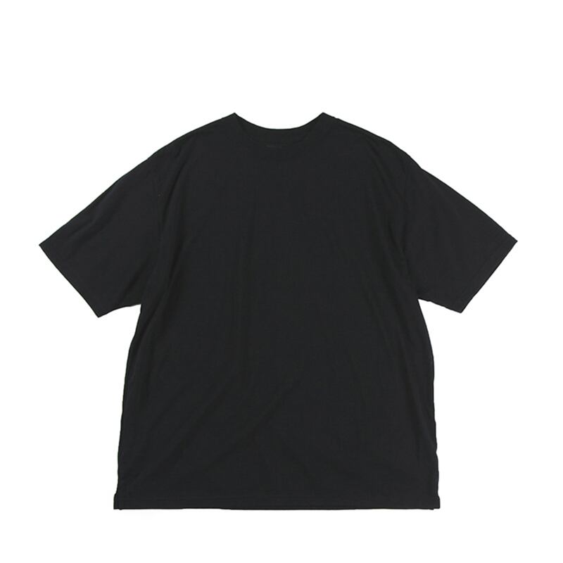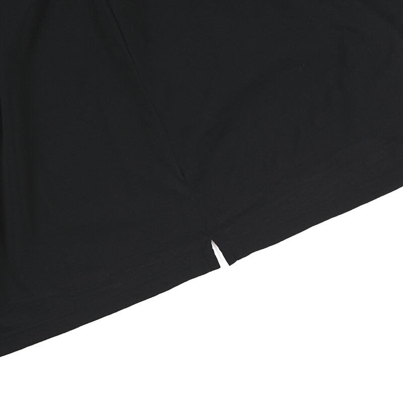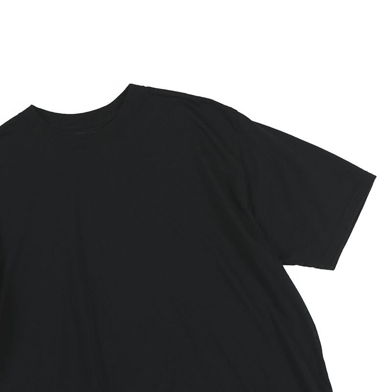 ブランドネームは襟元にプリントしています。Black:ダークグレー Saffron:ホワイト
