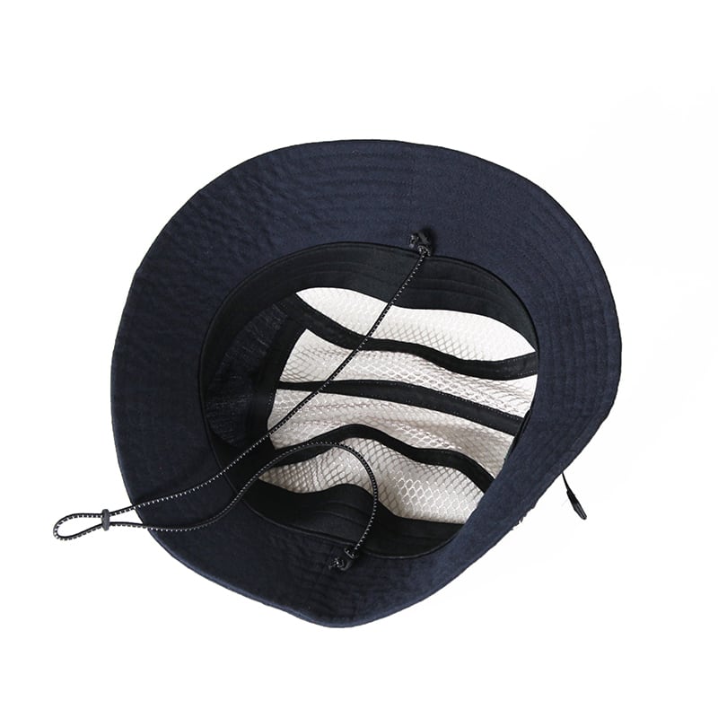 "Wool linen weather"とメッシュ切り替えた"Mesh hat"。日差しを防ぎながら、風抜けが良い被り心地です。スベリには厚手のメッシュ生地を採用し、フィット感を高め、顎紐のゴムスピンドルは取り外し可能な仕様になっています。ゆとりを多めに取った頭周りですが、ストラップで調整する"One Size Fit All"での展開です。