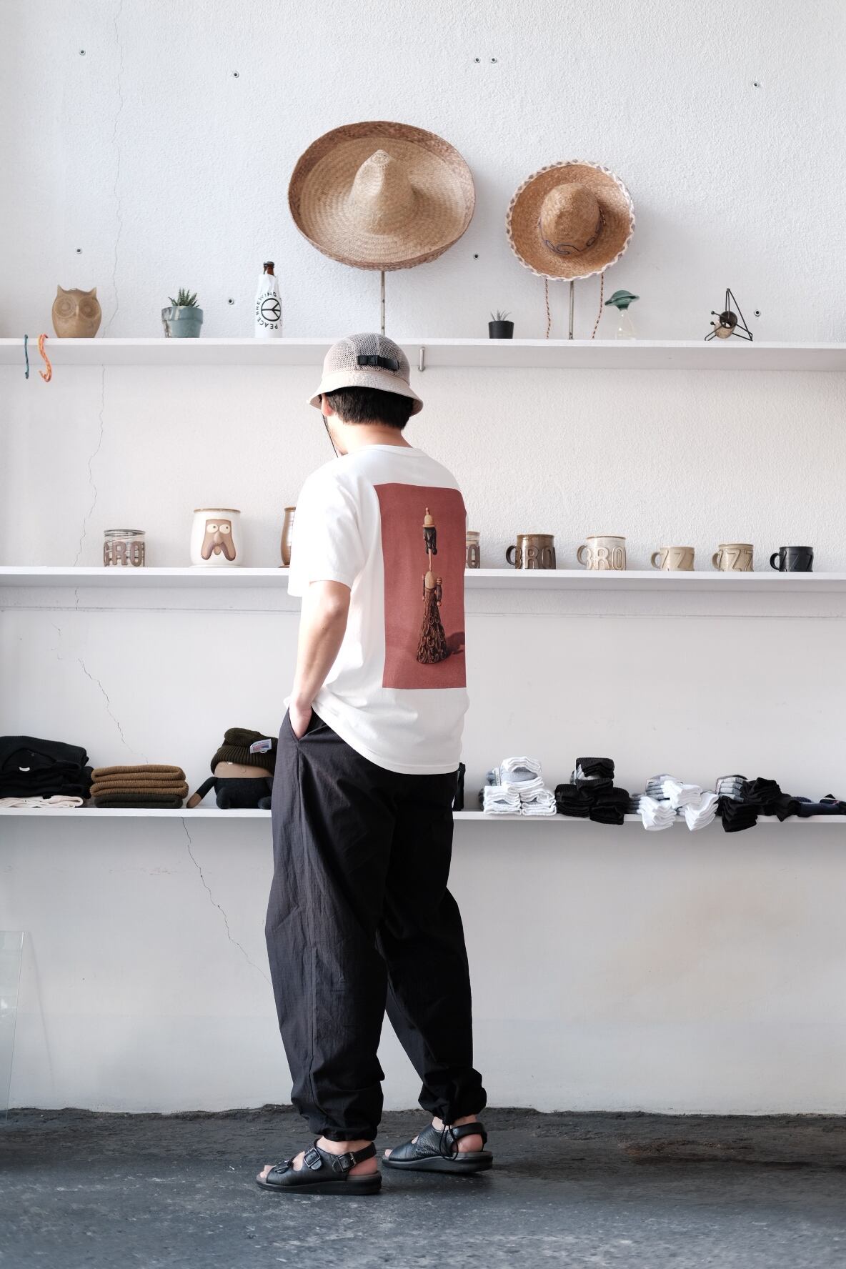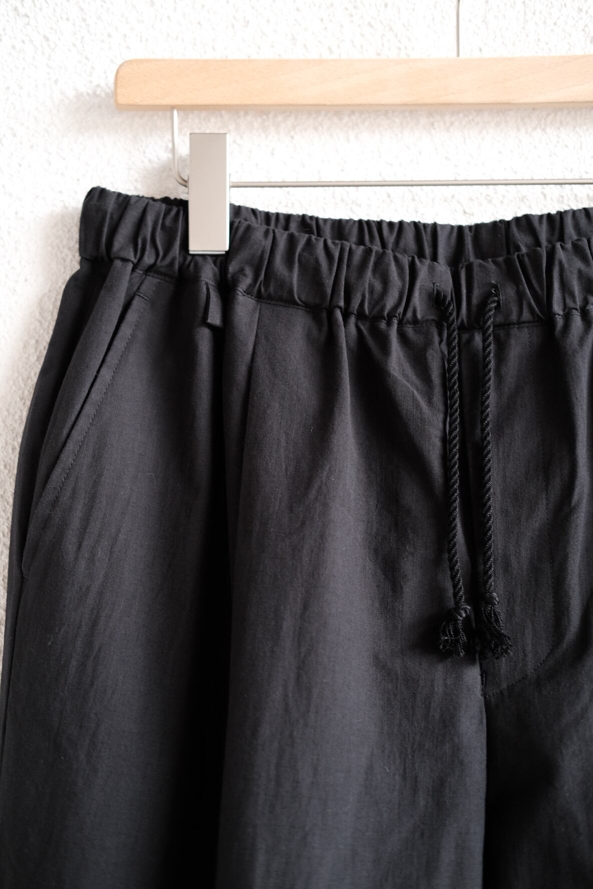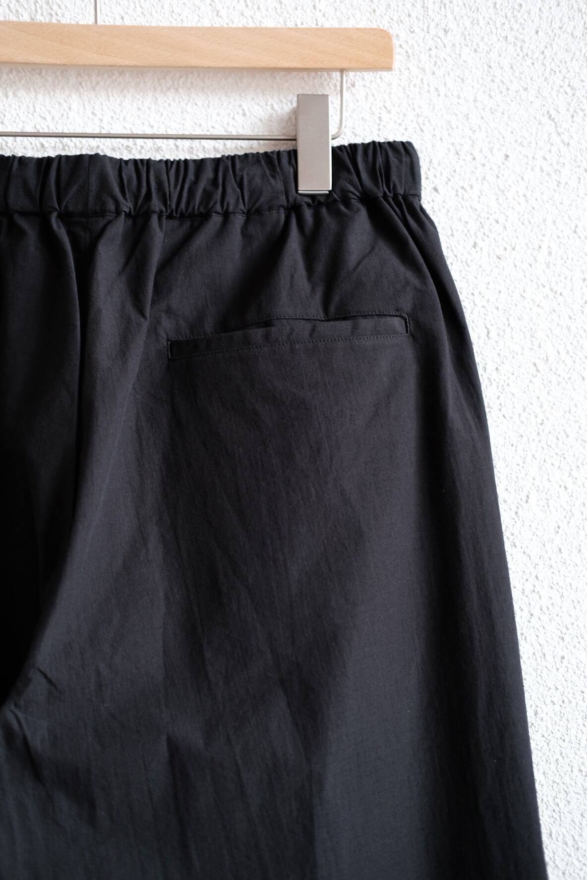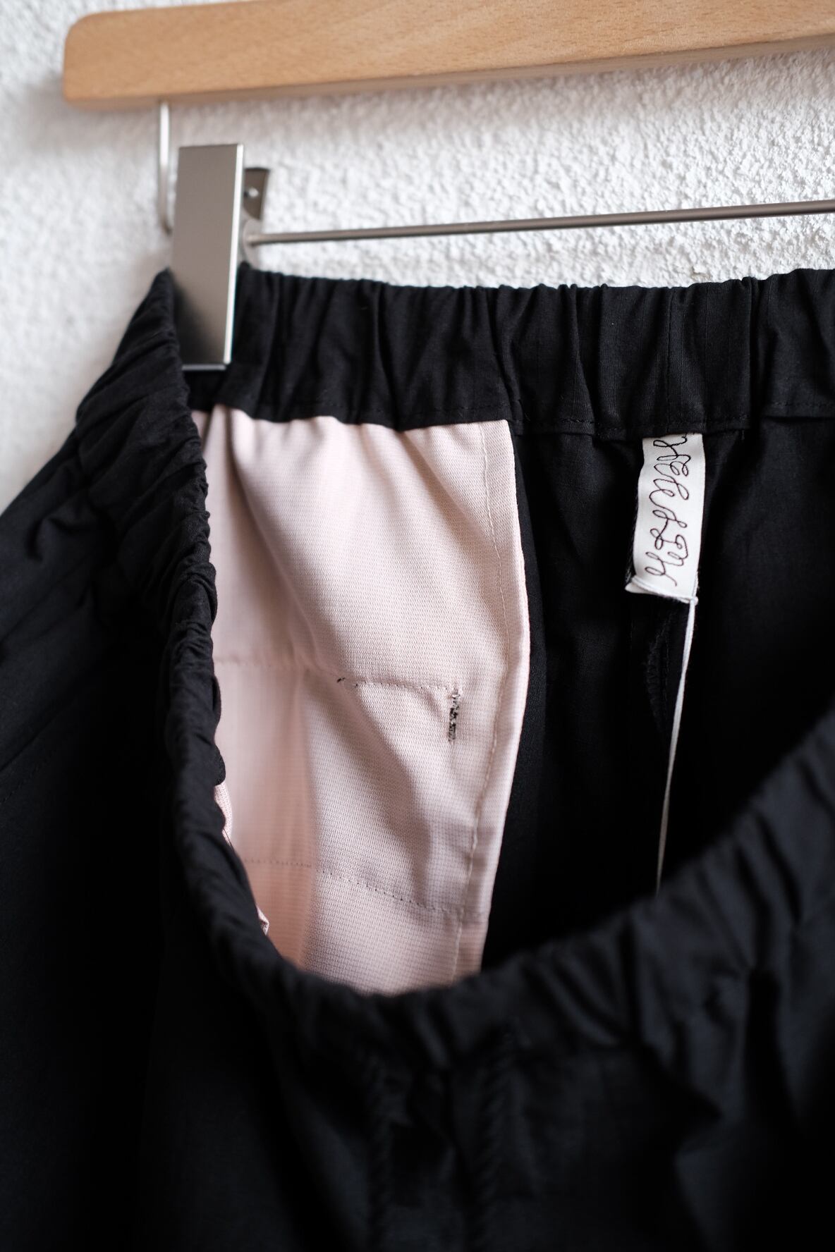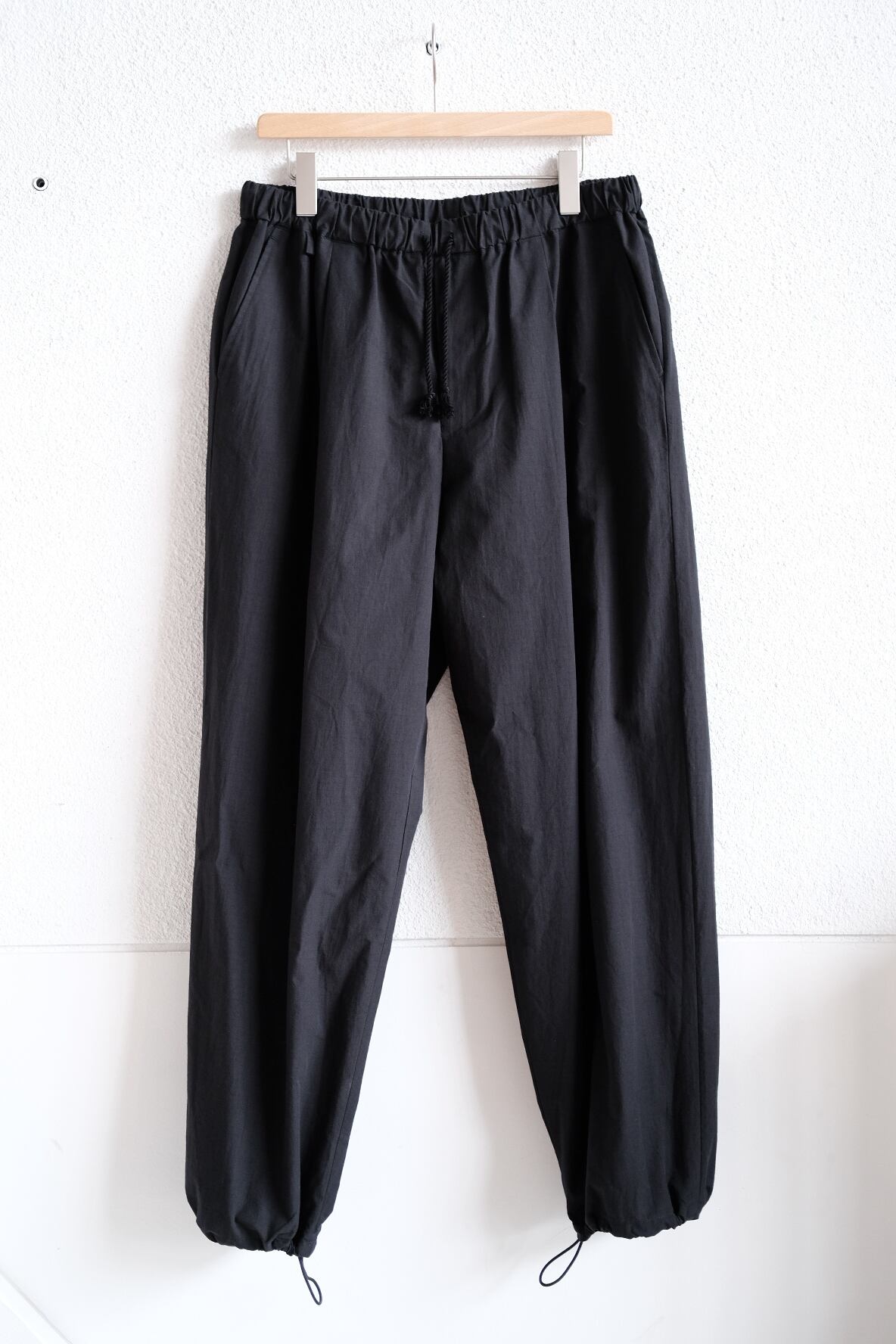 HEALTHで2021年から定番化しているEasy pants #7のサイドのポケットなしタイプ。USの古いスポーツウェアより着想。裾には現代的なアジャストシステム完備。イージーパンツとして最低限のステッチだけを残し工場の負担を軽減し、恒常的に高いクオリティを保つデザインとなっています。
