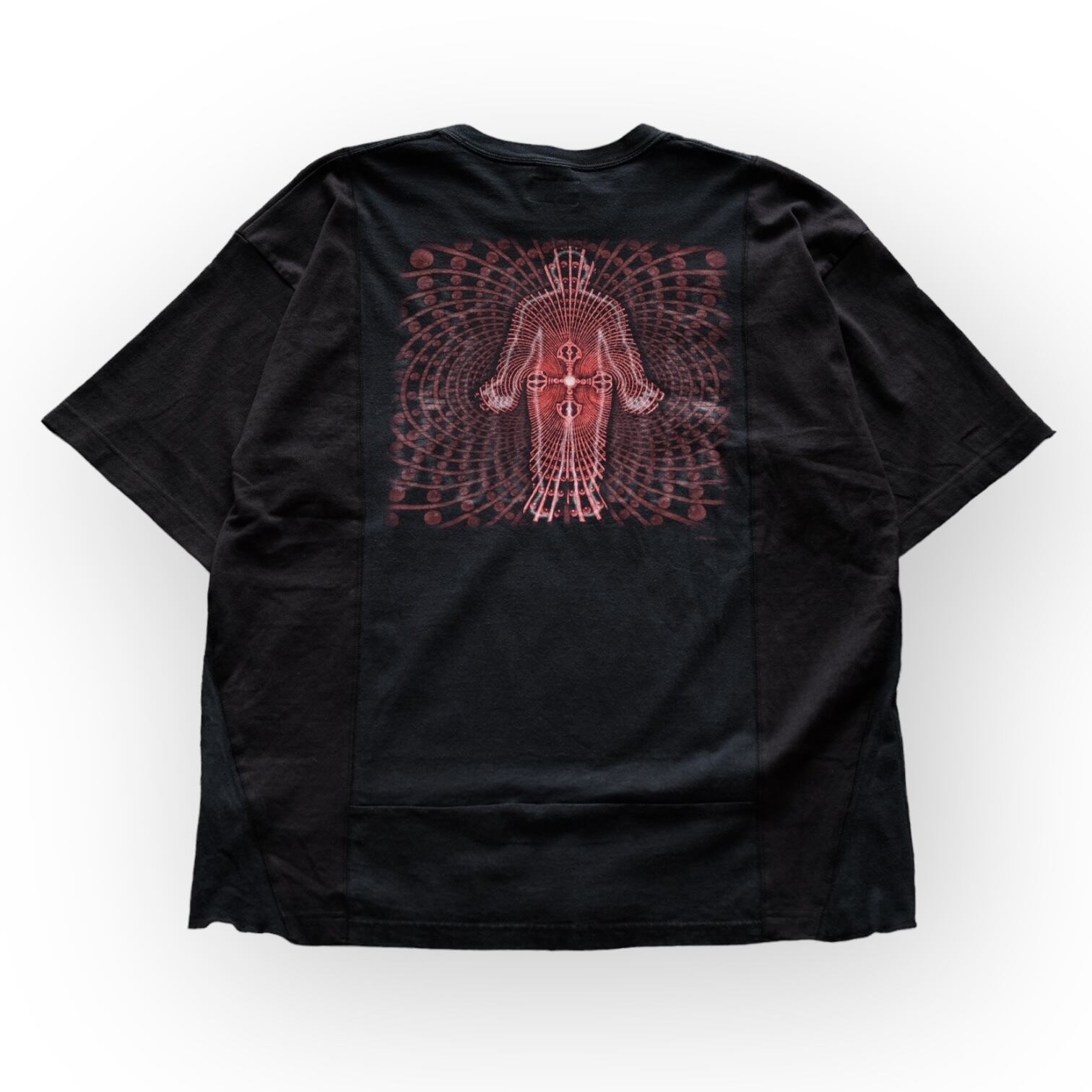 USED TEEを1枚解体し再構築。前身頃と脇部分にUSEDのボディに合うように脇、袖にアメリカ製のファブリックを使用しています。