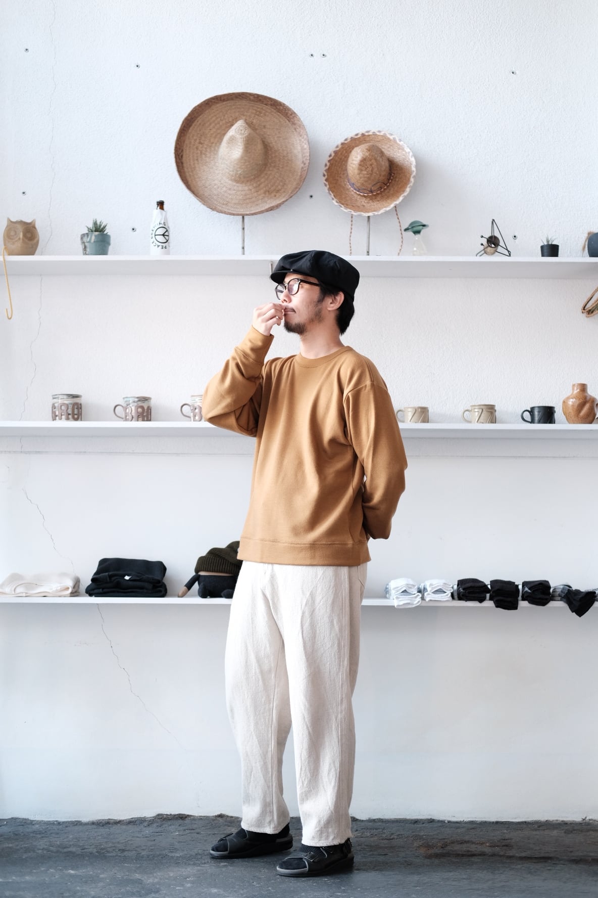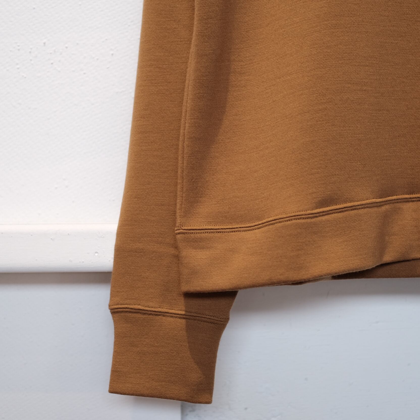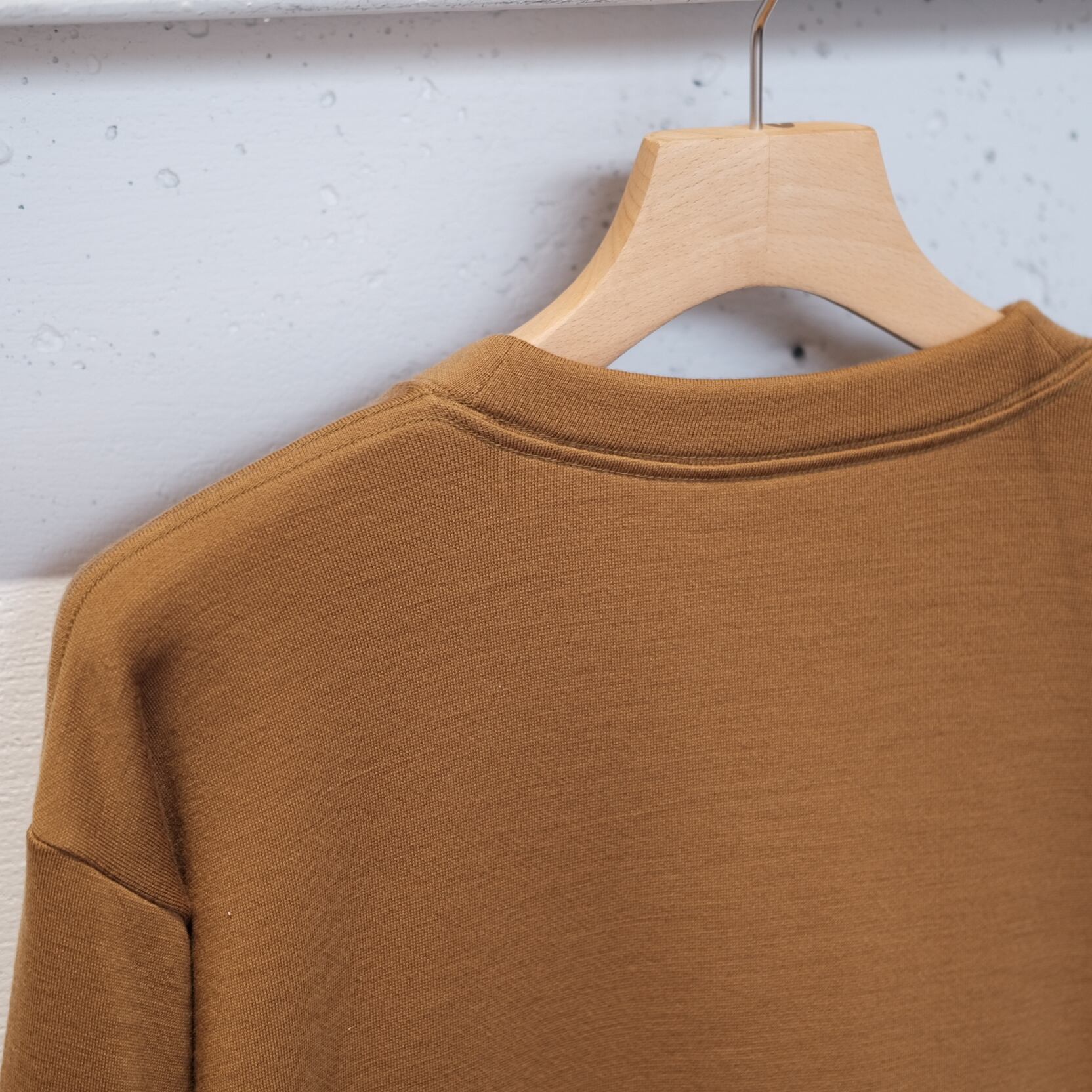 昨年好評でしたウールトレーナーに新色が登場です。繊維の細い糸を使うことで、しなやかで光沢がありとても軽くて、おまけに暖かいという良いことばかりのトレーナーです。コットンなどで作られるカジュアルなものも良いですが、ウールトレーナーというやや上品な感じもスタイルの幅が広がりより一層楽しめると思います。シルエットはボックスシルエットでリラックスして着用いただけます。スウェット、トレーナー好きの方はぜひお試しください。