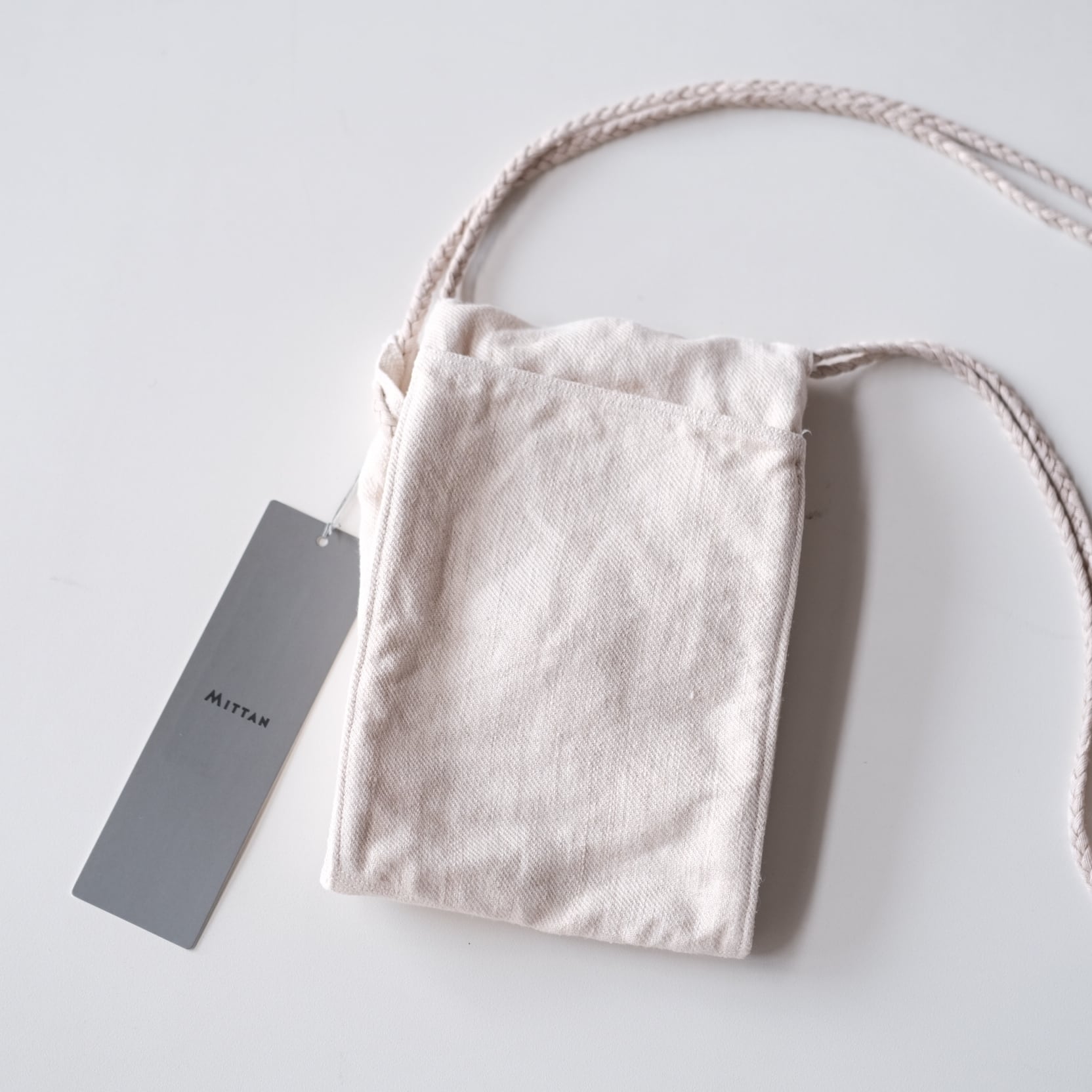 ウェアでもよく使われている綾織大麻を使用したコンパクトなバッグ。冬場はアウターの中に忍ばせておくと可愛いですね。マチが大きく見た目以上に容量がありますので使い勝手のいいサイズです。各所に施された補強ステッチがミッタンらしい細かい作業です。