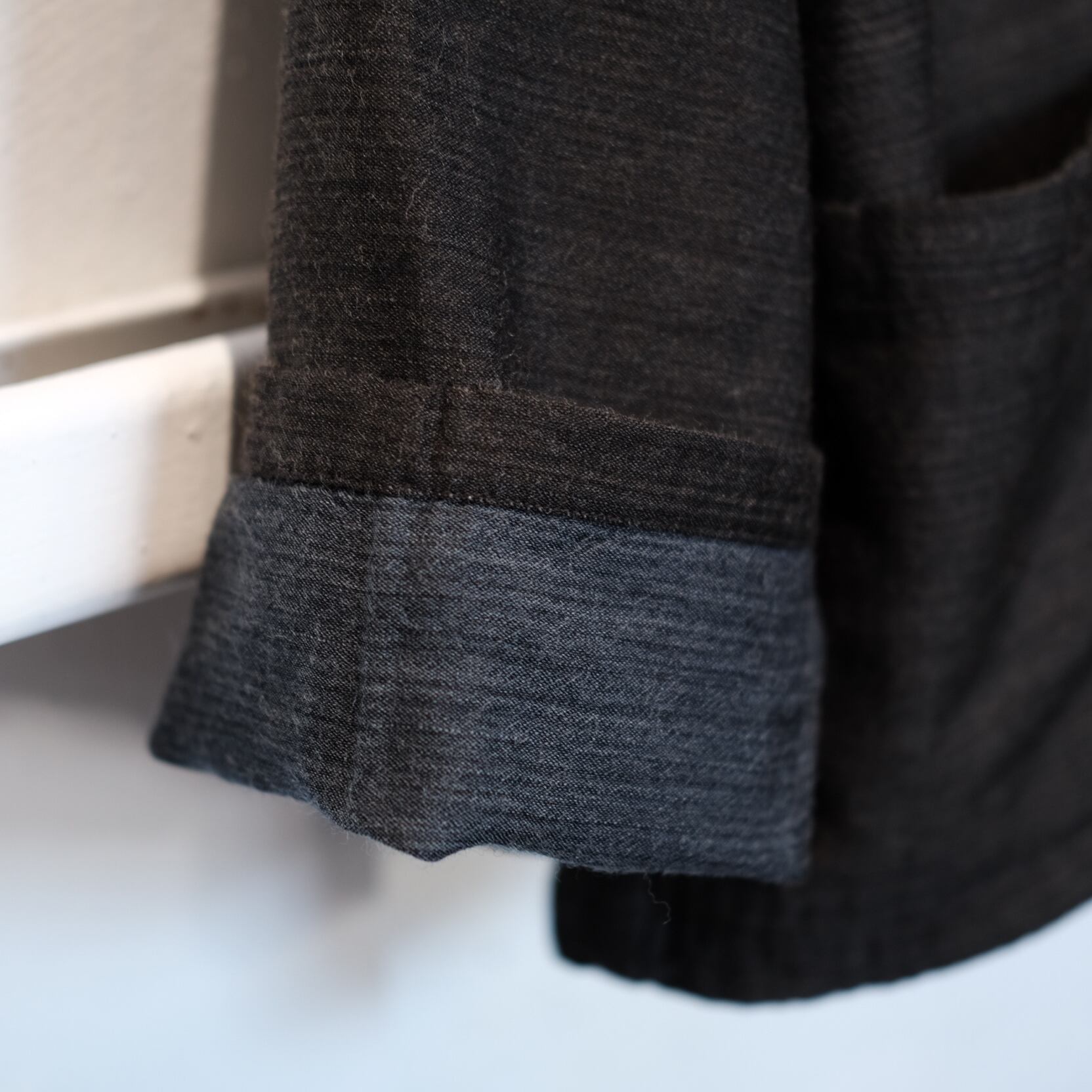 三層になった生地で見た目以上に暖かいプルオーバーシャツです。スモッグのようなデザインで軍パンなどに合わせても良さそうですね。身幅はゆったりとしてましてインナーに着込むことも可能。シャツとしても良いですし、ライトアウターのような感覚でも着用いただけます。