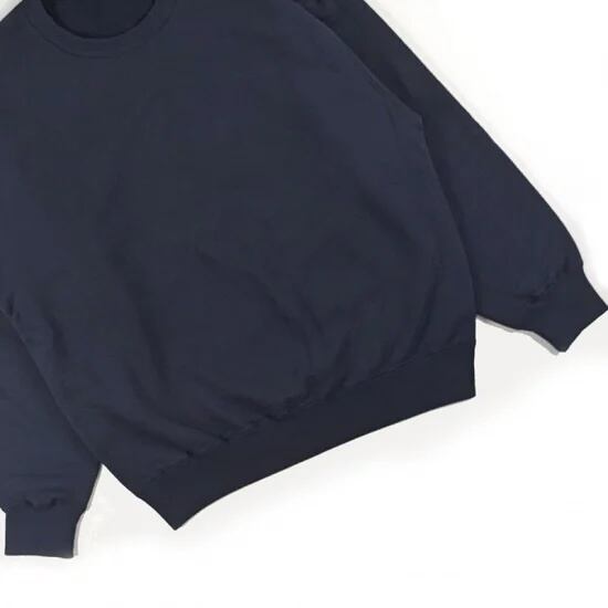 カナダ製、ヘビーオンスクルーネックスウェットになります。20オンスの裏起毛仕様、しっかり厚みのある生地ですが、着心地は柔らかくゆったりとしたシルエットになります。縫製はほとんどが4本針のフラットシーマで縫製されており、耐久性と肌触りも考えられた拘りの一着。着るほどに体に馴染んで更に風合いの変化も楽しめます。