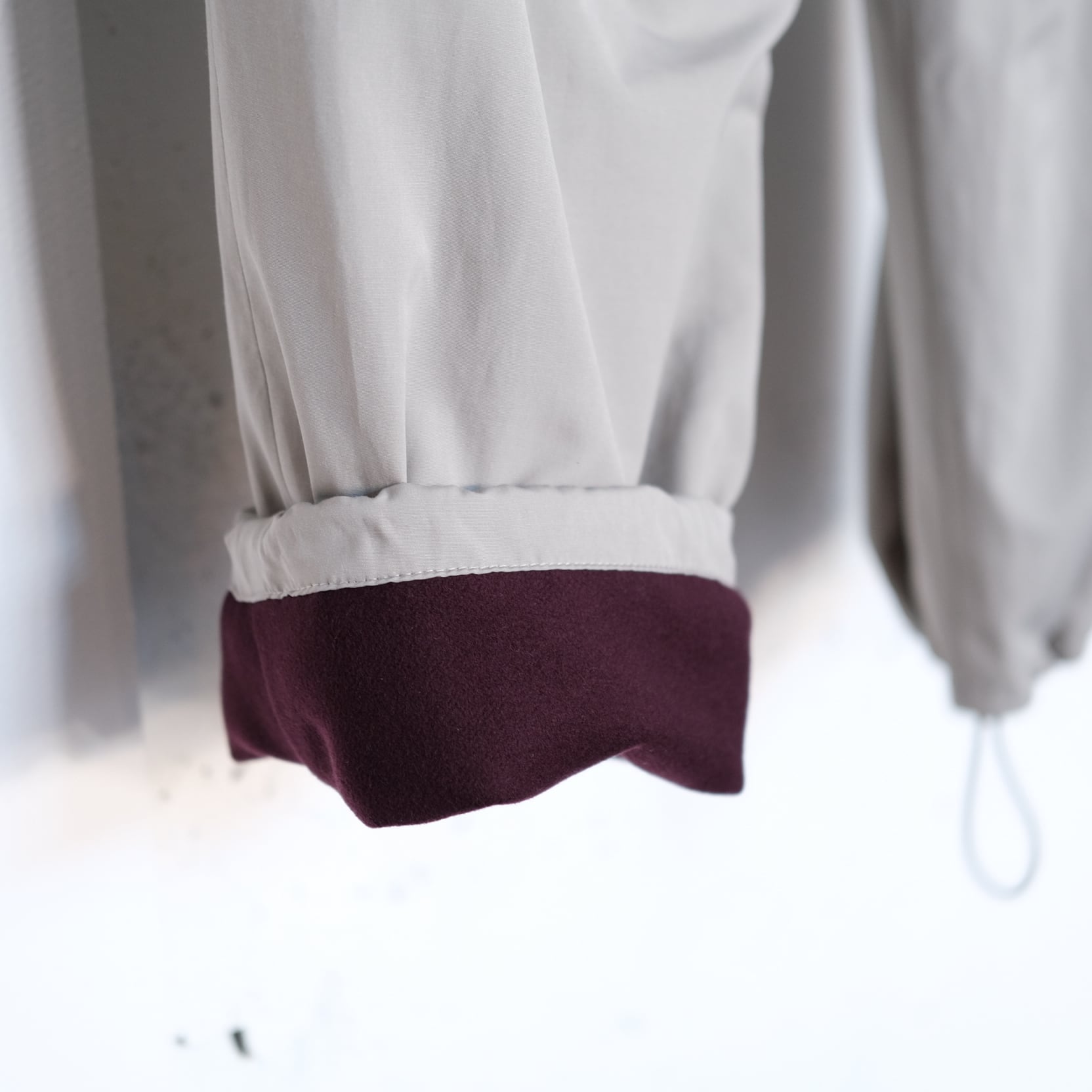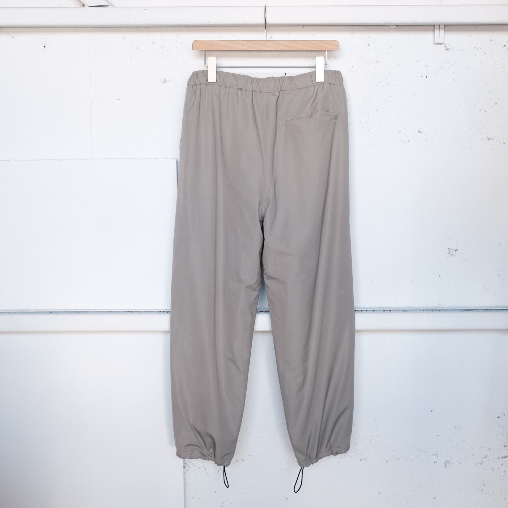 HEALTHで2021年から定番化しているEasy pants #7のサイドのポケットなしタイプ。USの古いスポーツウェアより着想。裾には現代的なアジャストシステム完備。イージーパンツとして最低限のステッチだけを残し工場の負担を軽減し、恒常的に高いクオリティを保つデザインとなっています。