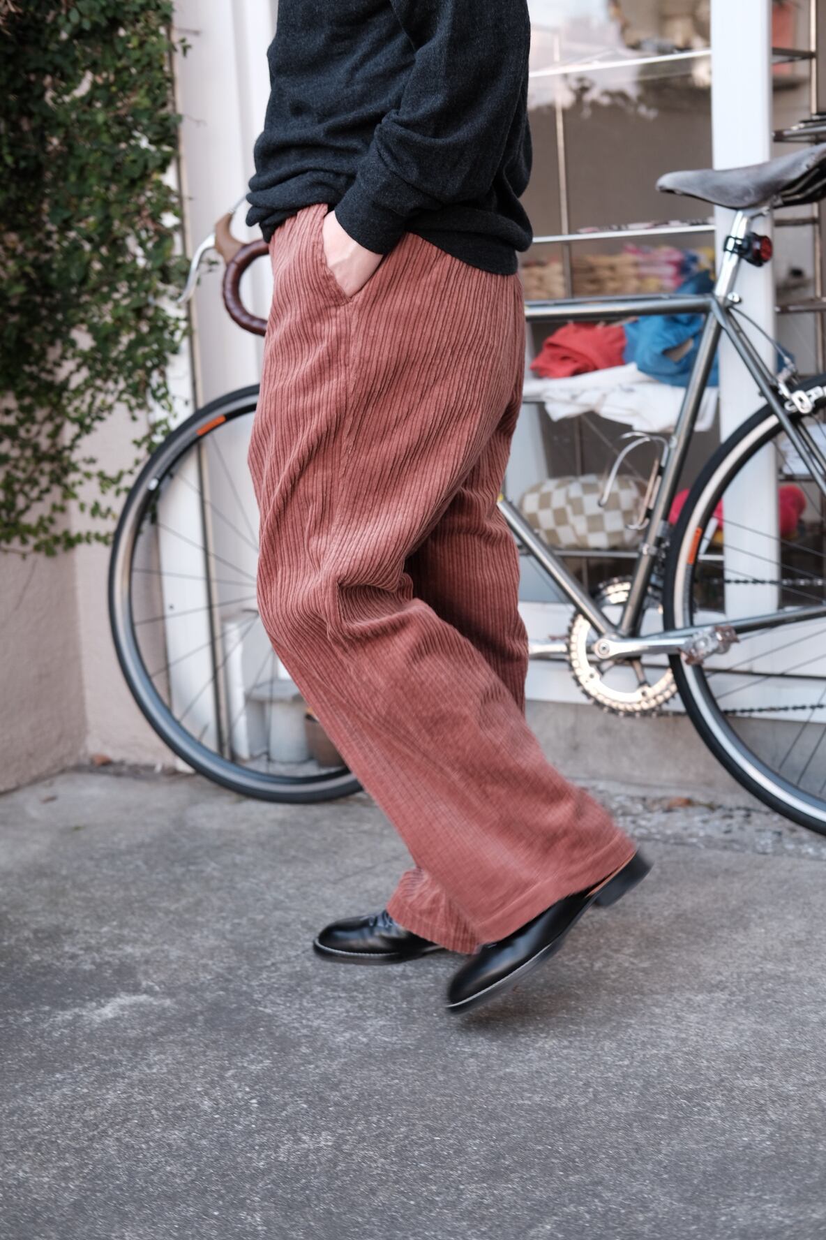 HEALTHで長年定番にしているEasy pants #3。人間の可動域を確保しながら、美しいパターンワークを実現。イージーパンツとして最低限のステッチだけを残し工場の負担を軽減し、恒常的に高いクオリティを保つデザインとなっています。